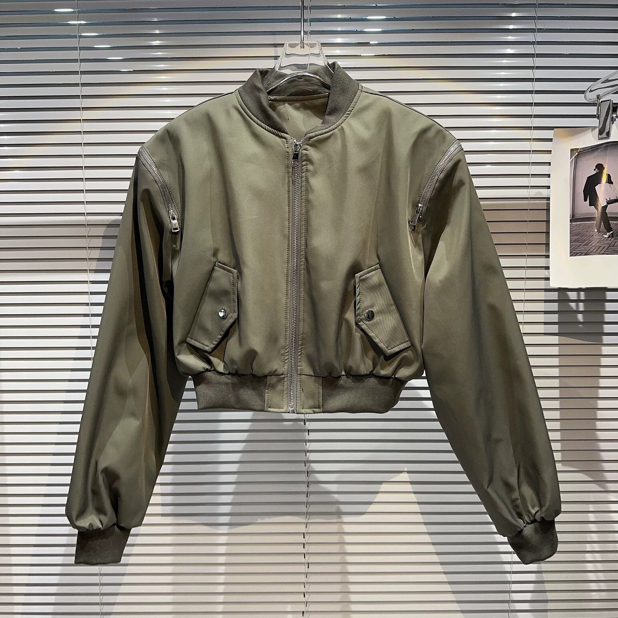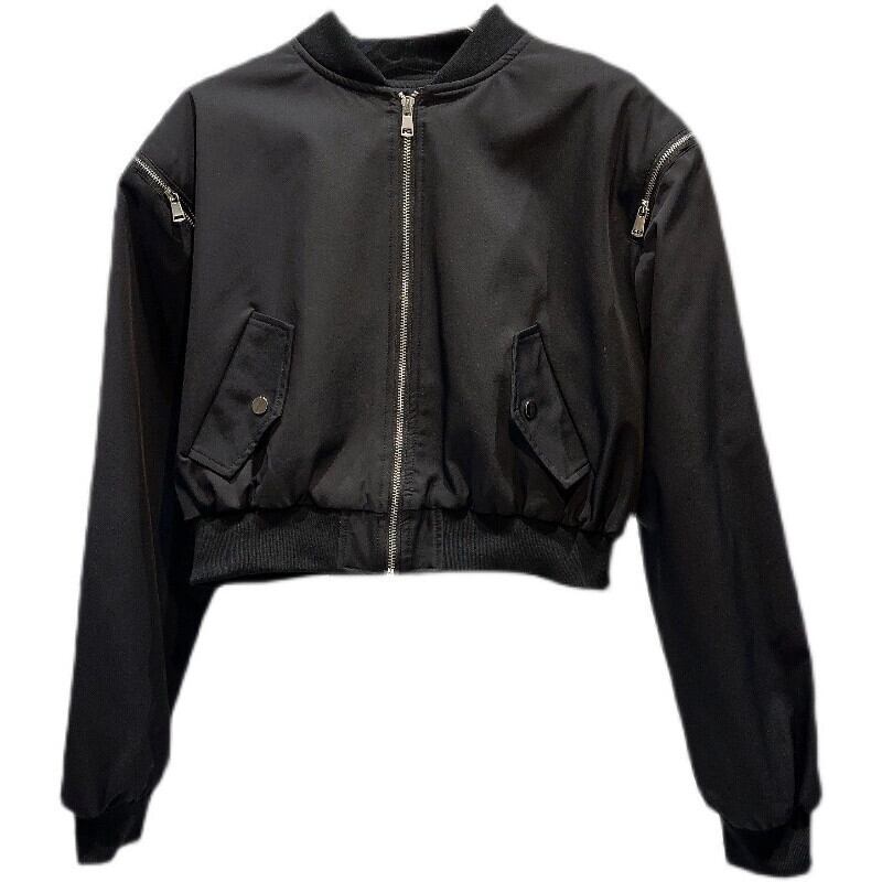 ネットセレブと同じスタイル2024春の新作ニッチスタイルショルダーダブルジッパーデザインストリートショートコートジャケットトレンディ スプリング 春物 gyan333524256657 | vestitialla