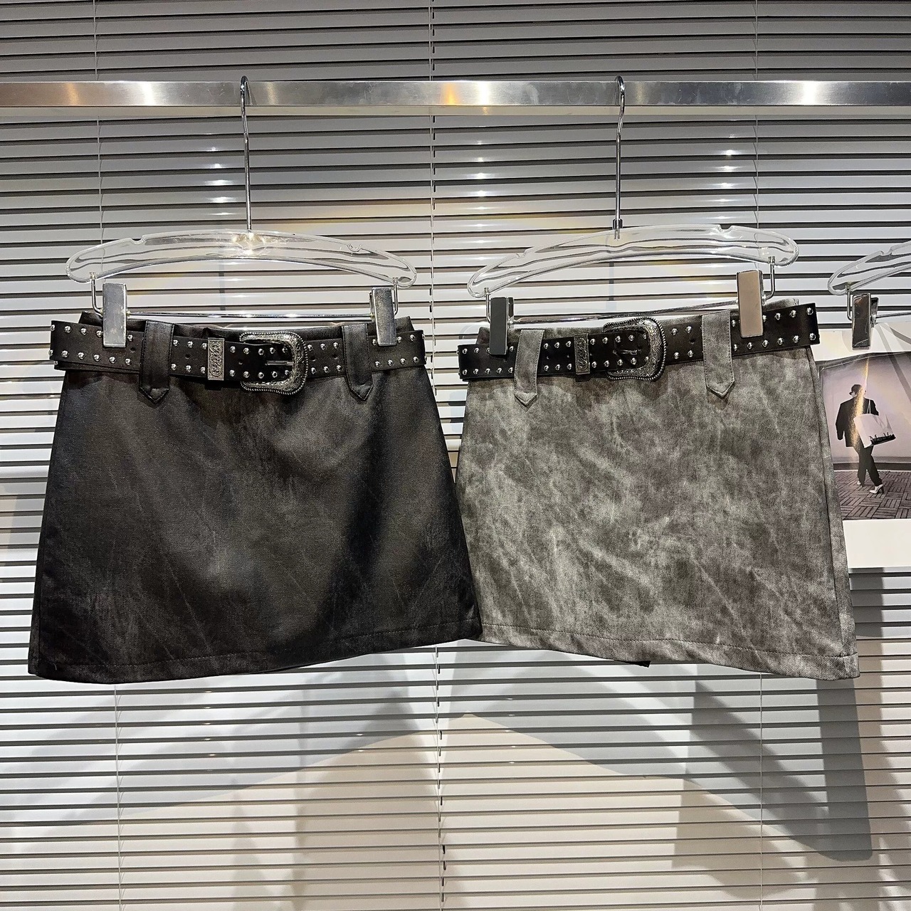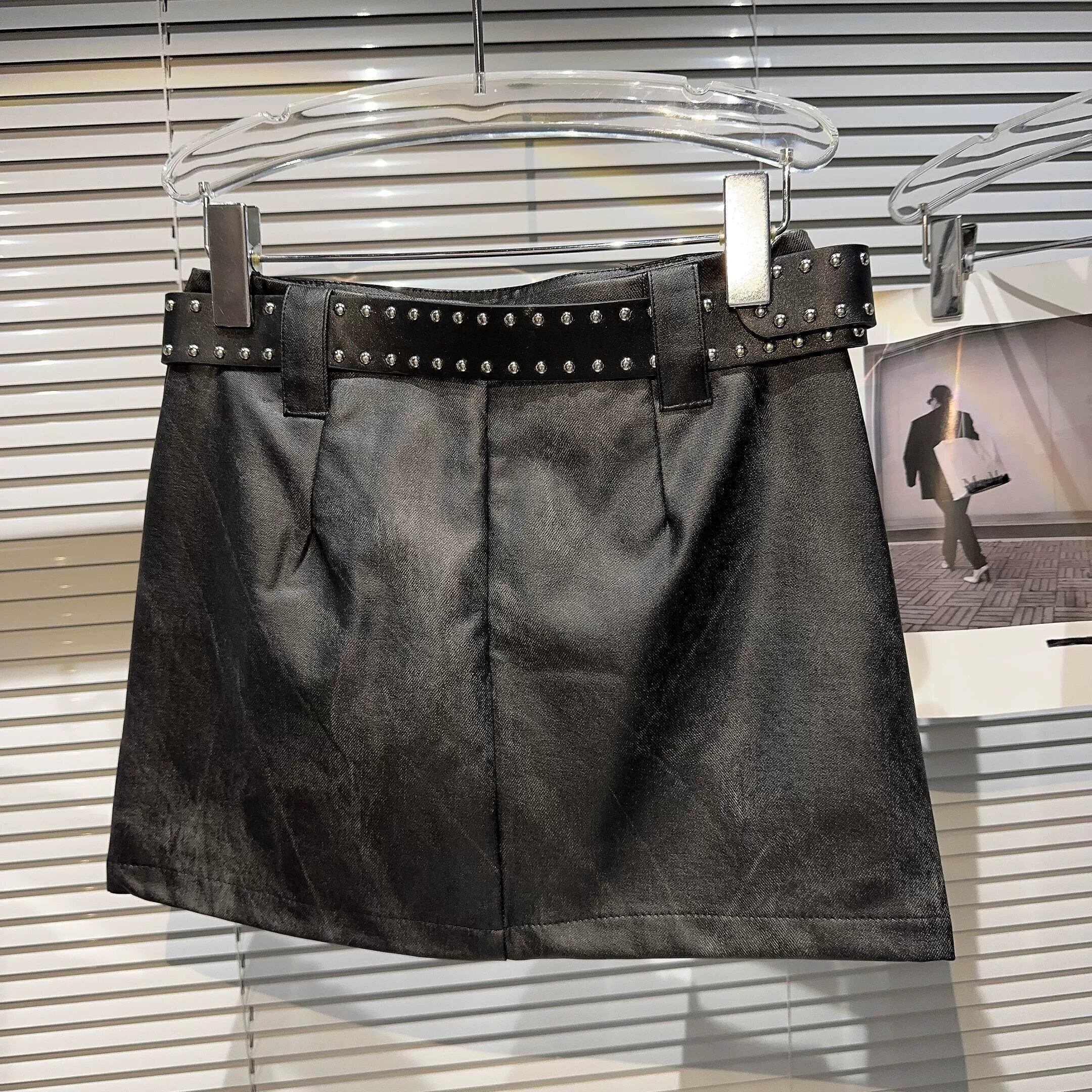 インターネットセレブと同じスタイル 2024 春の新作ダークリベットベルト汚れた PU レザースカートヒップカバースカートスカート スプリング 春物 ハーネス gyan331893219052 | vestitialla