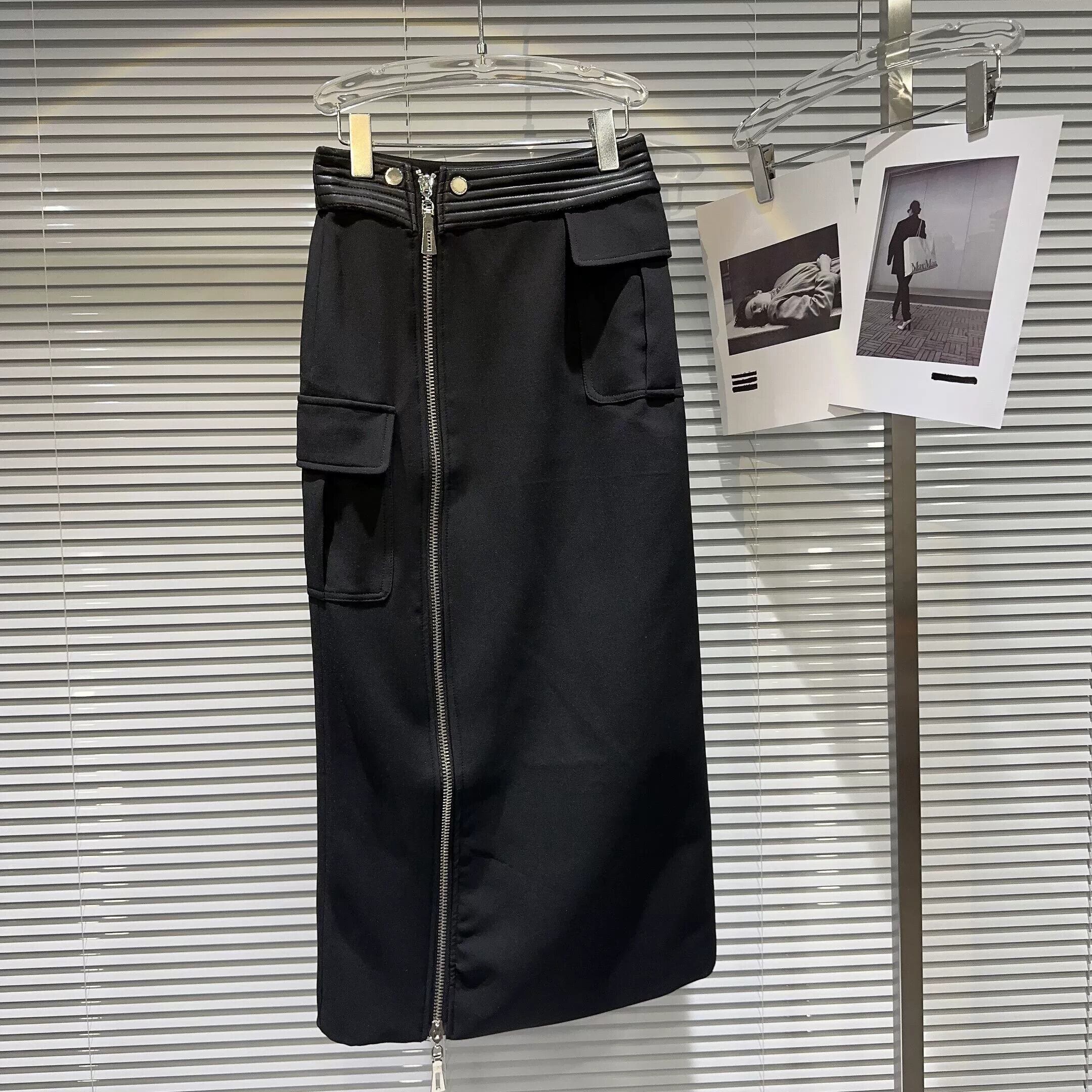 ネットセレブと同じスタイル 2024 春の新作ストリートレザーウエストバンドジッパーミッドレングス H スカートヒップカバースカートワンステップスカート女性 スプリング 春物 gyan3363342516080 | vestitialla