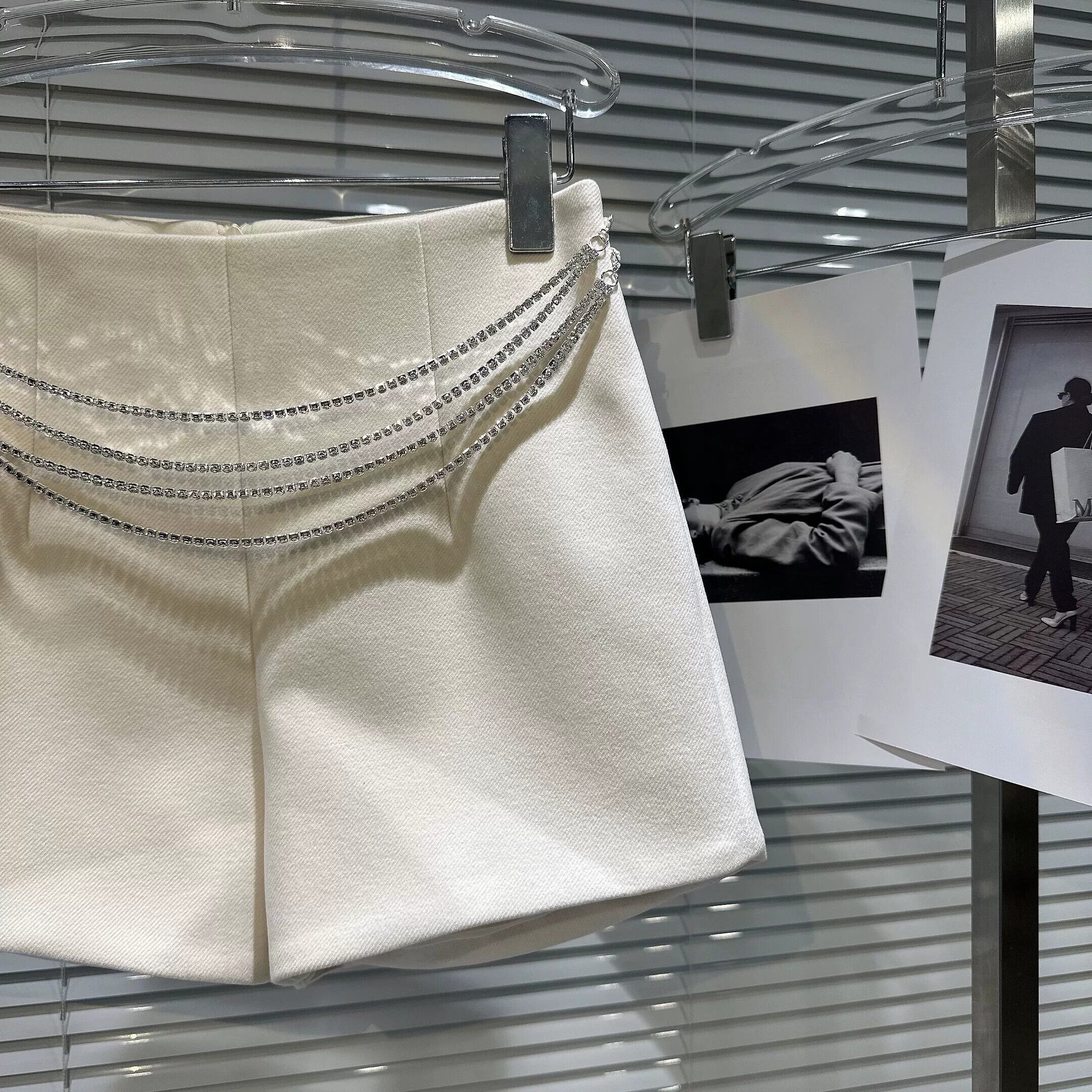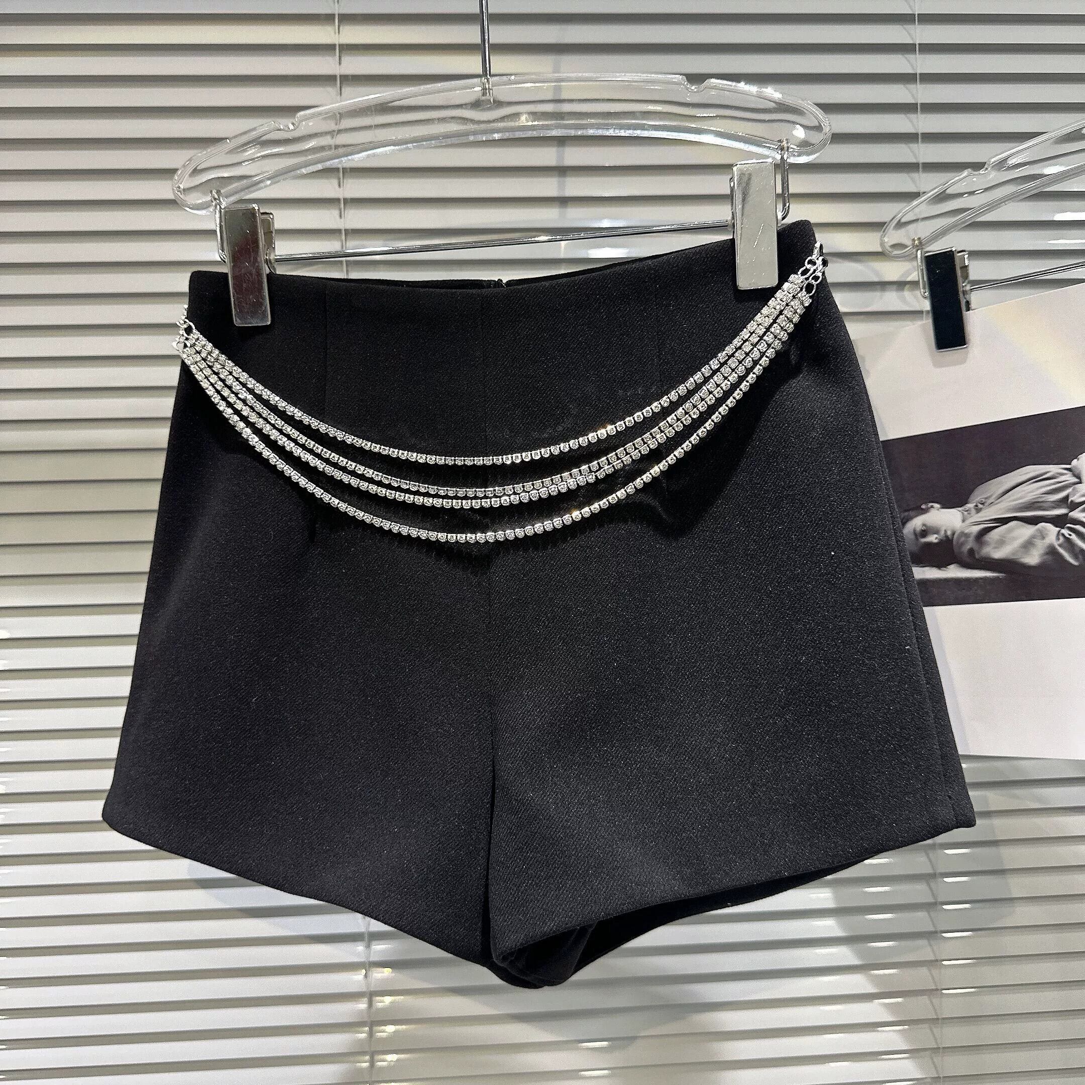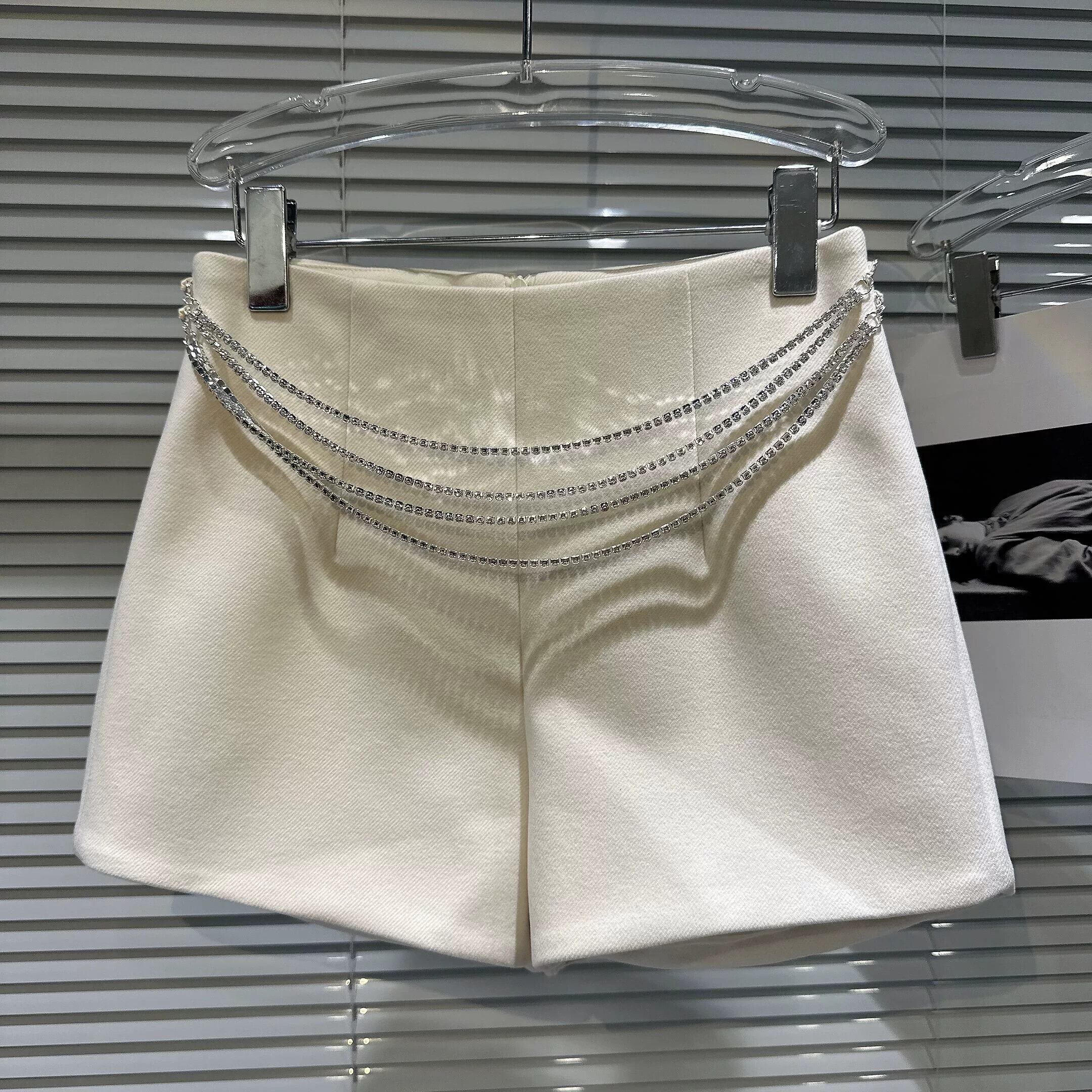 ネット有名人の同じスタイル 2024 春の新スタイルの小さな香りのラインストーンテルダイヤモンドチェーンウエストチェーン気質 3 点ウールショーツ女性 スプリング 春物 ブルマー gyan3322105942662 | vestitialla