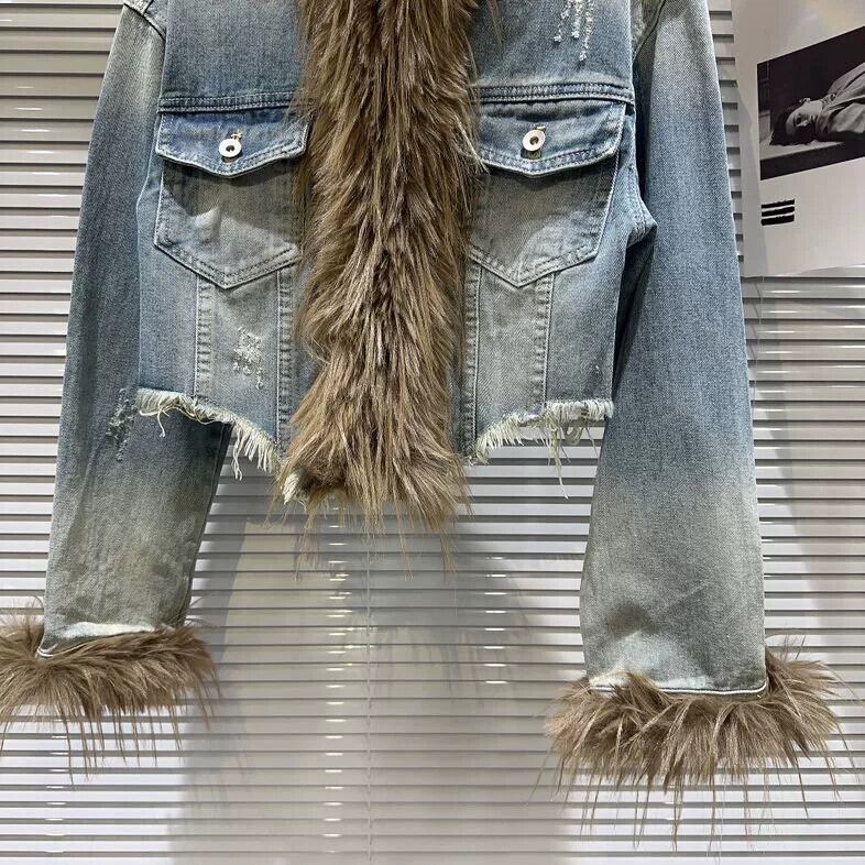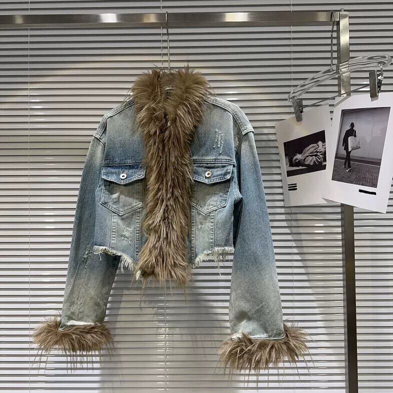 インターネットセレブと同じスタイル 2024 春の新ニッチ環境に優しい毛皮の襟袖口グラデーションデニムショートジャケット スプリング 春物 gyan3375135955955 | vestitialla