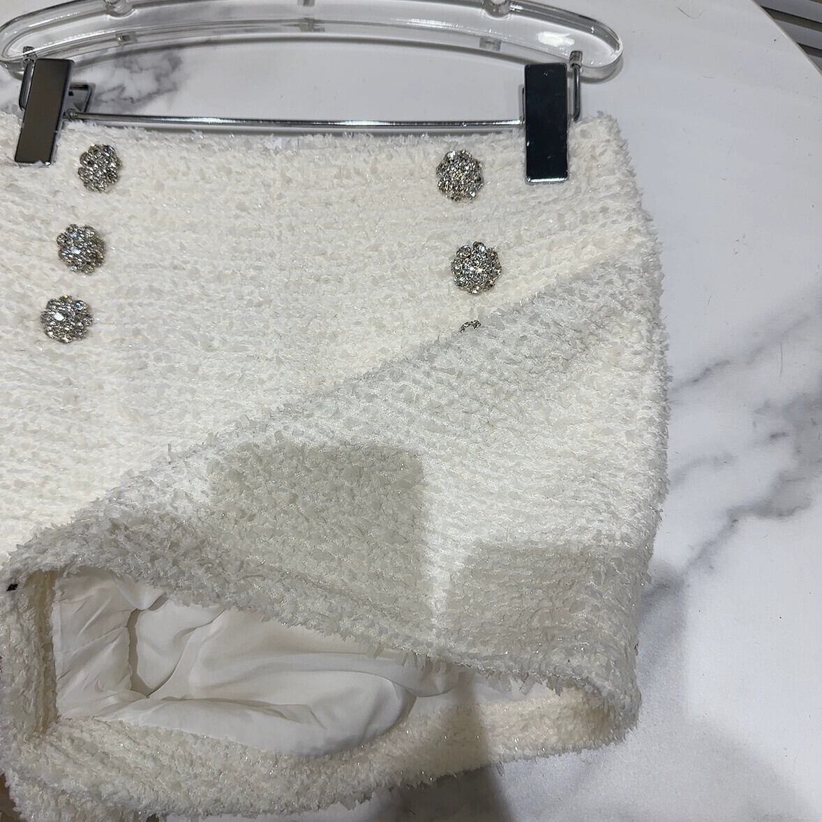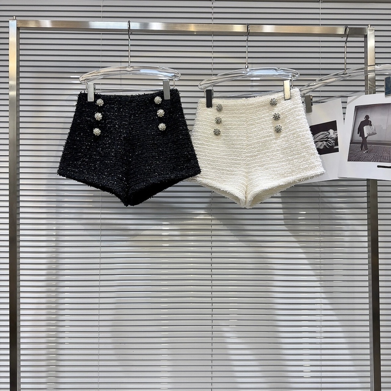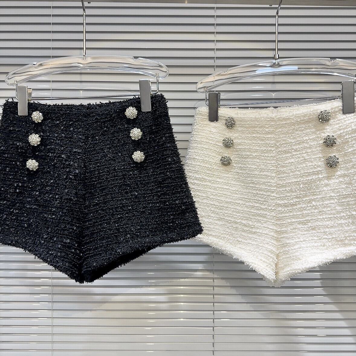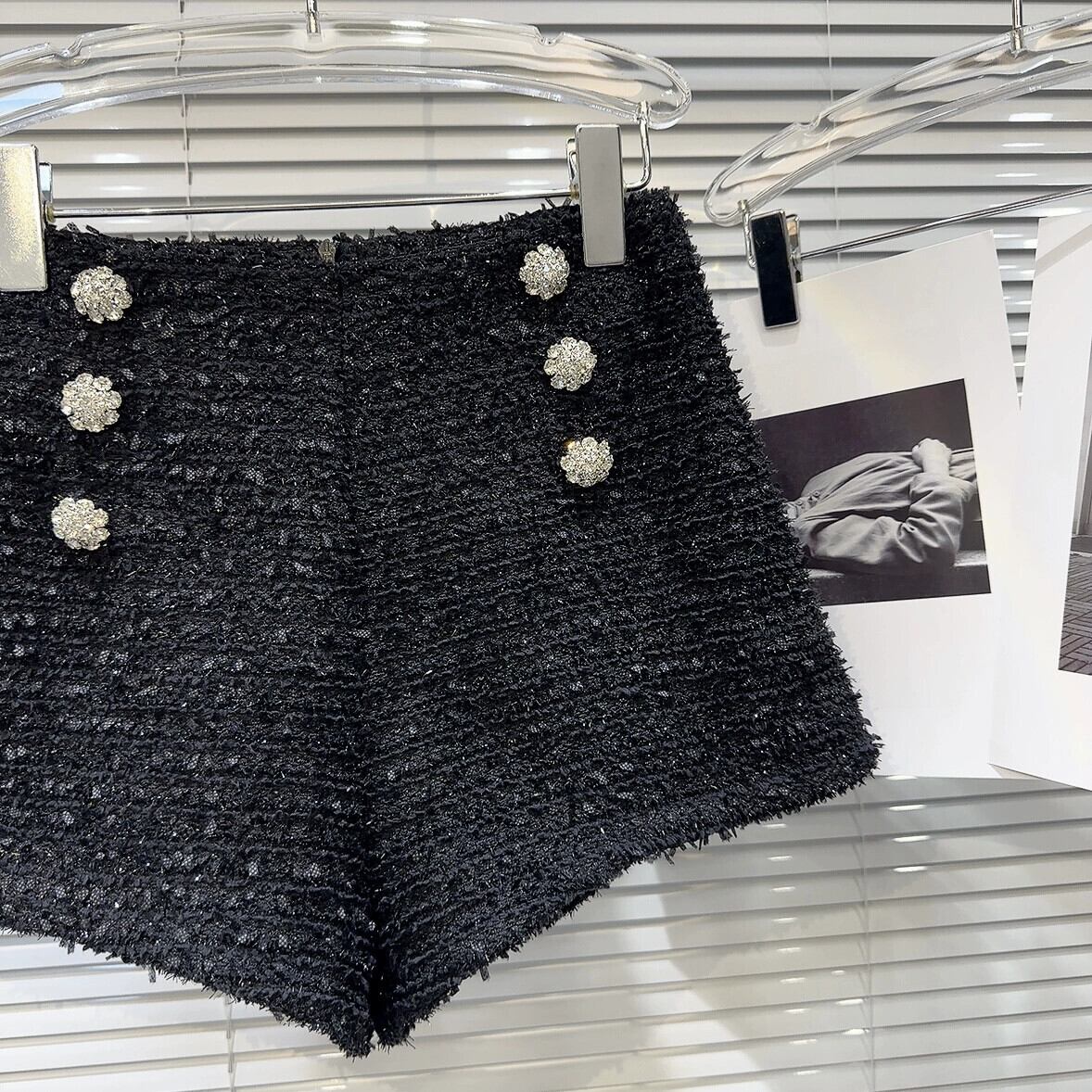 インターネット有名人の同じスタイル 2024 春の新しい小さな香りのスタイルの高精細セレブのラインストーンのバックル明るいシルクツイード 3 分丈ショーツ女性 スプリング 春物 ブルマー gyan3343509041210 | vestitialla