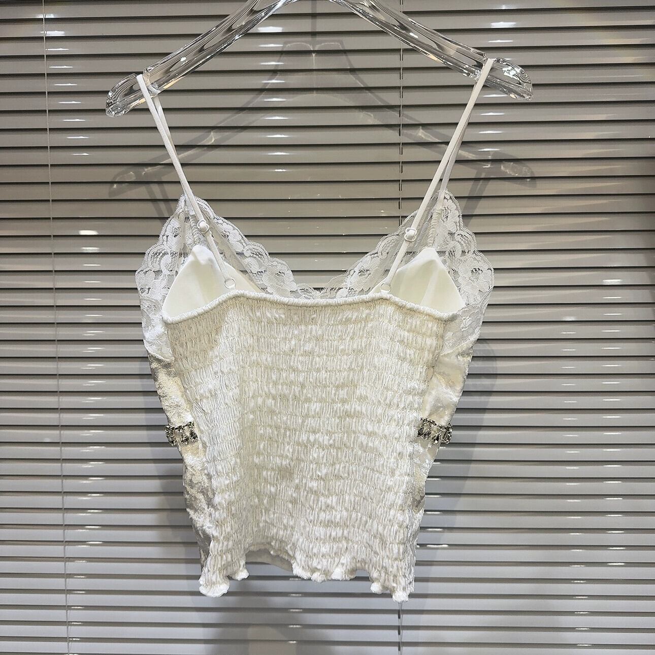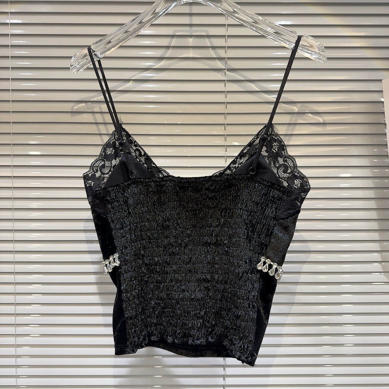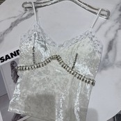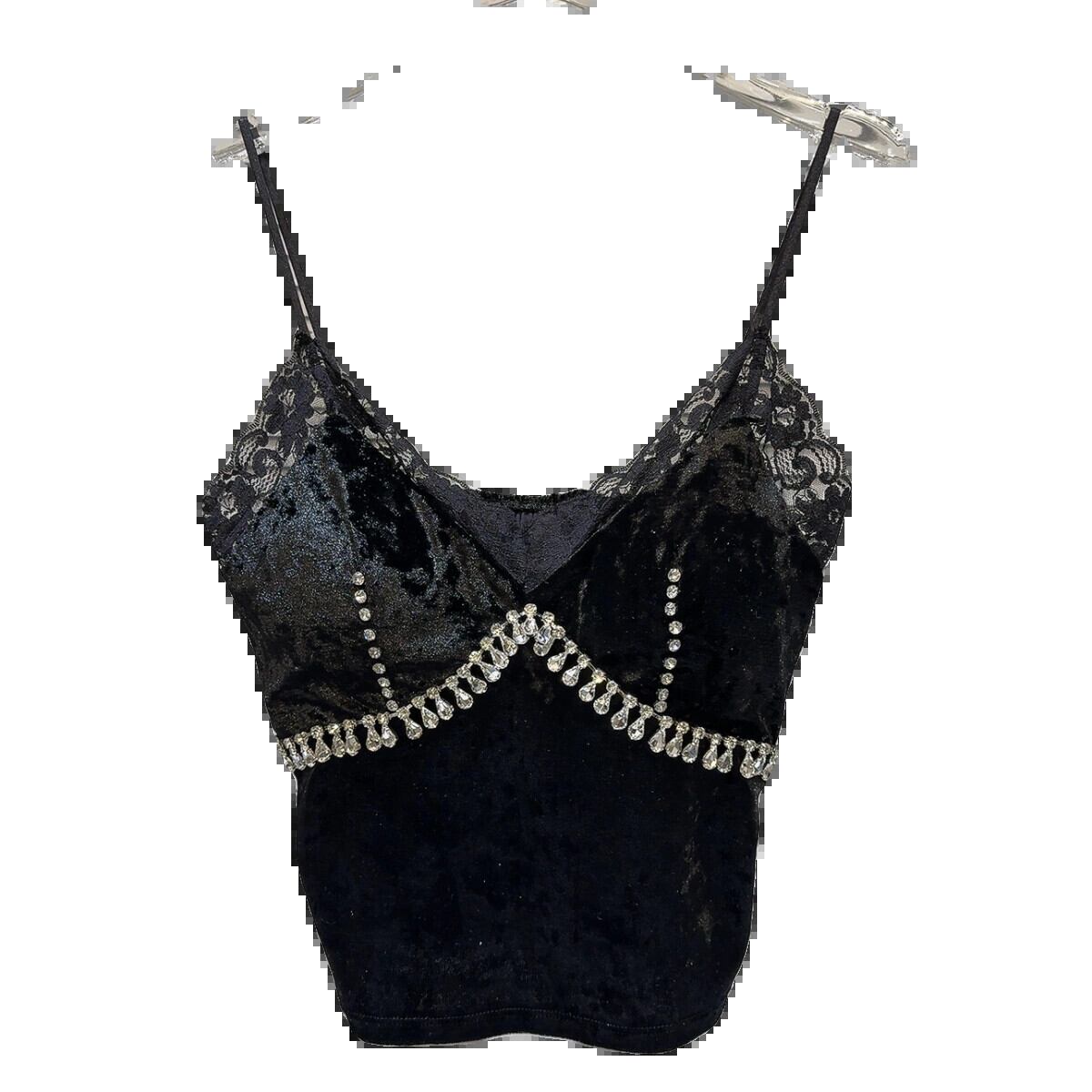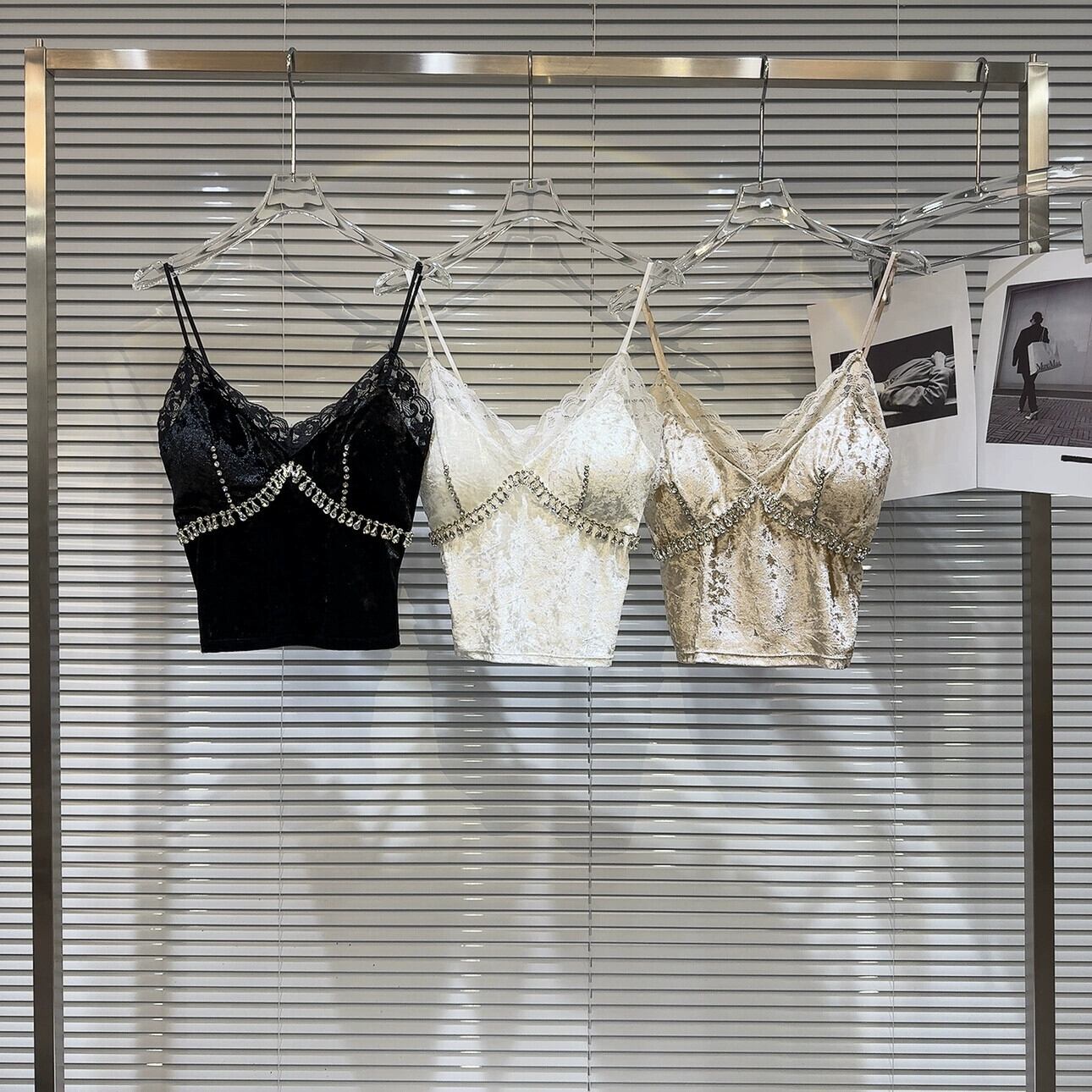 インターネットセレブと同じスタイル 2024 冬の新セクシーなセレブのラインストーンビーズベルベットレース胸パッドキャミソール女性 ウィンター 冬物 gyan3320669120153 | vestitialla