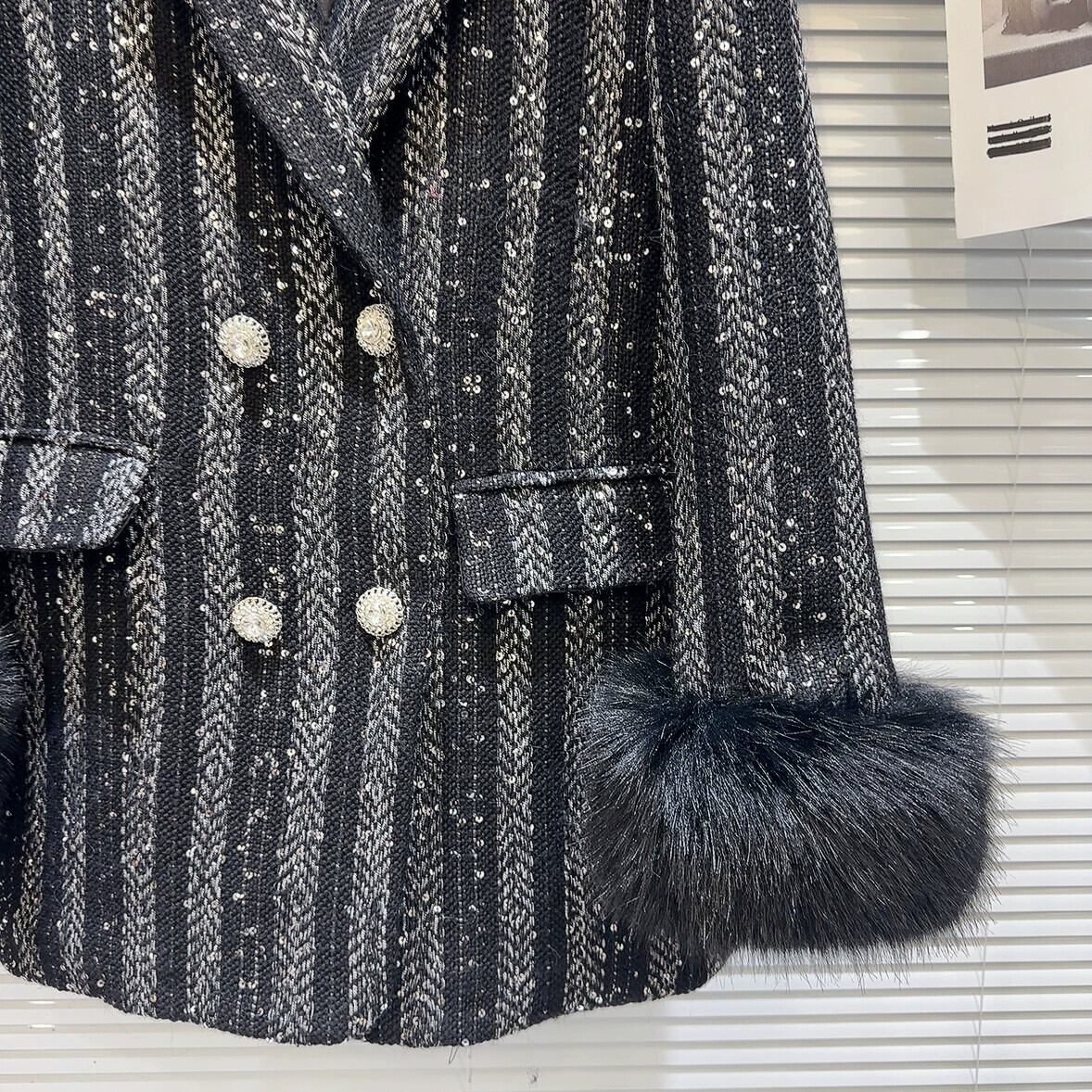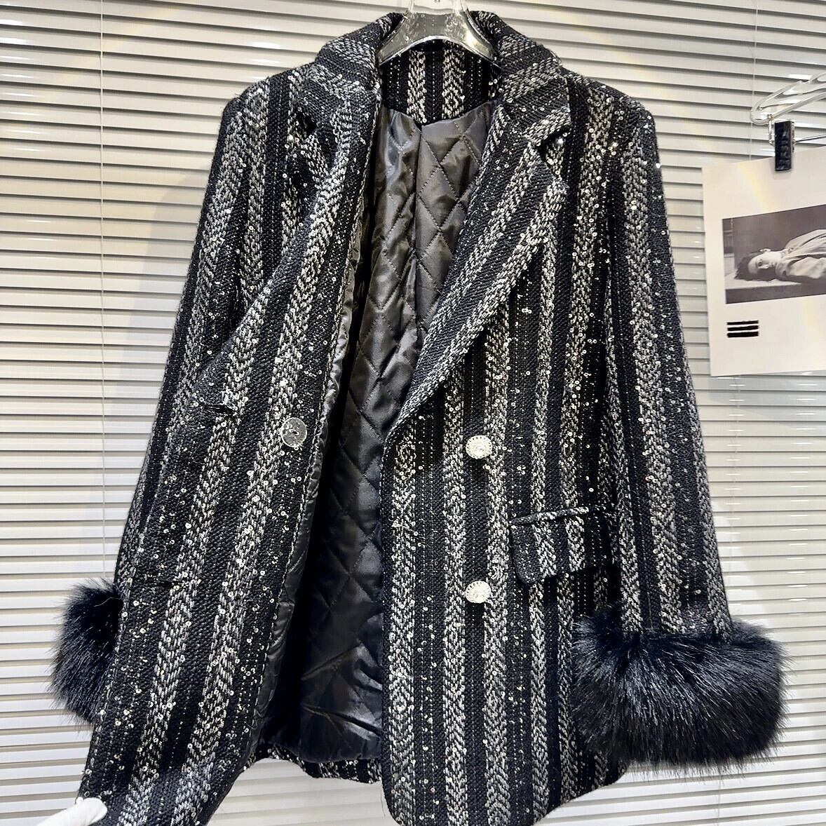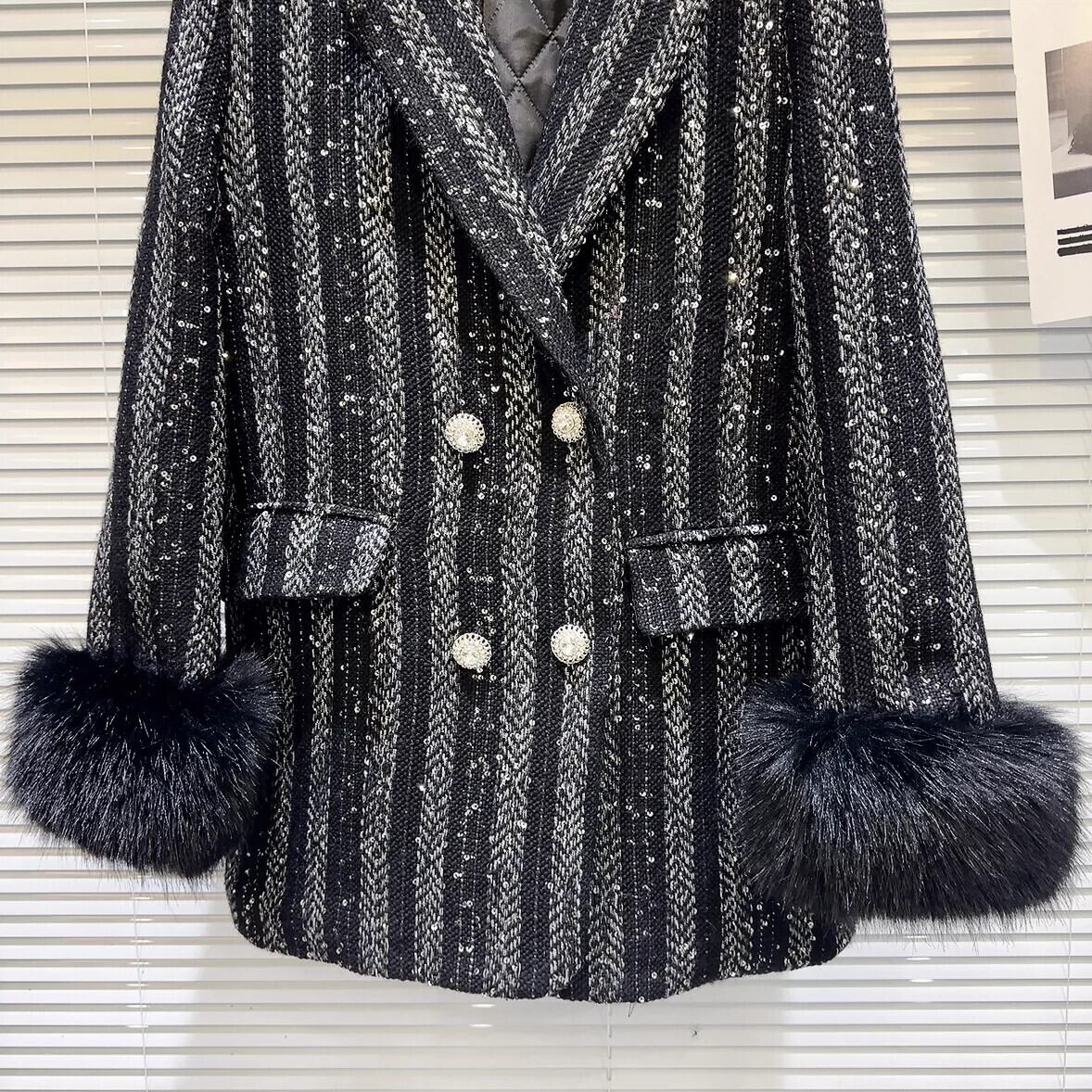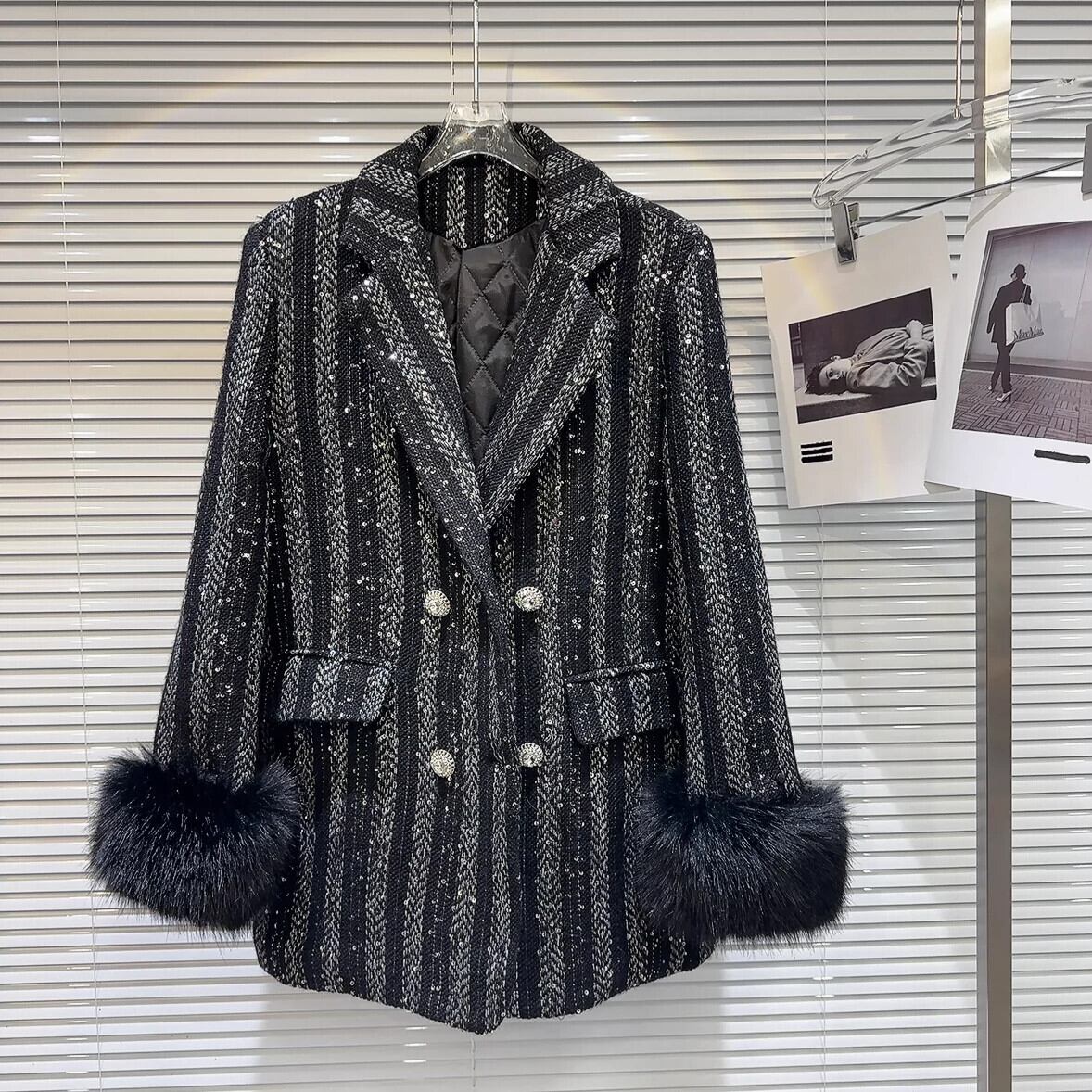 インターネット有名人の同じスタイル 2024 冬の新スタイル Xiaoxiangfeng 毛皮のような袖口ダイヤモンド ツイード キルティング ロング スーツ ジャケット ウィンター 冬物 gyan3319242246498 | vestitialla