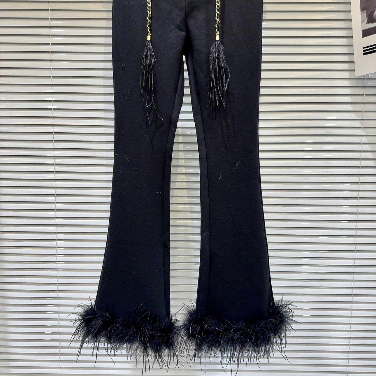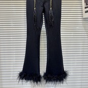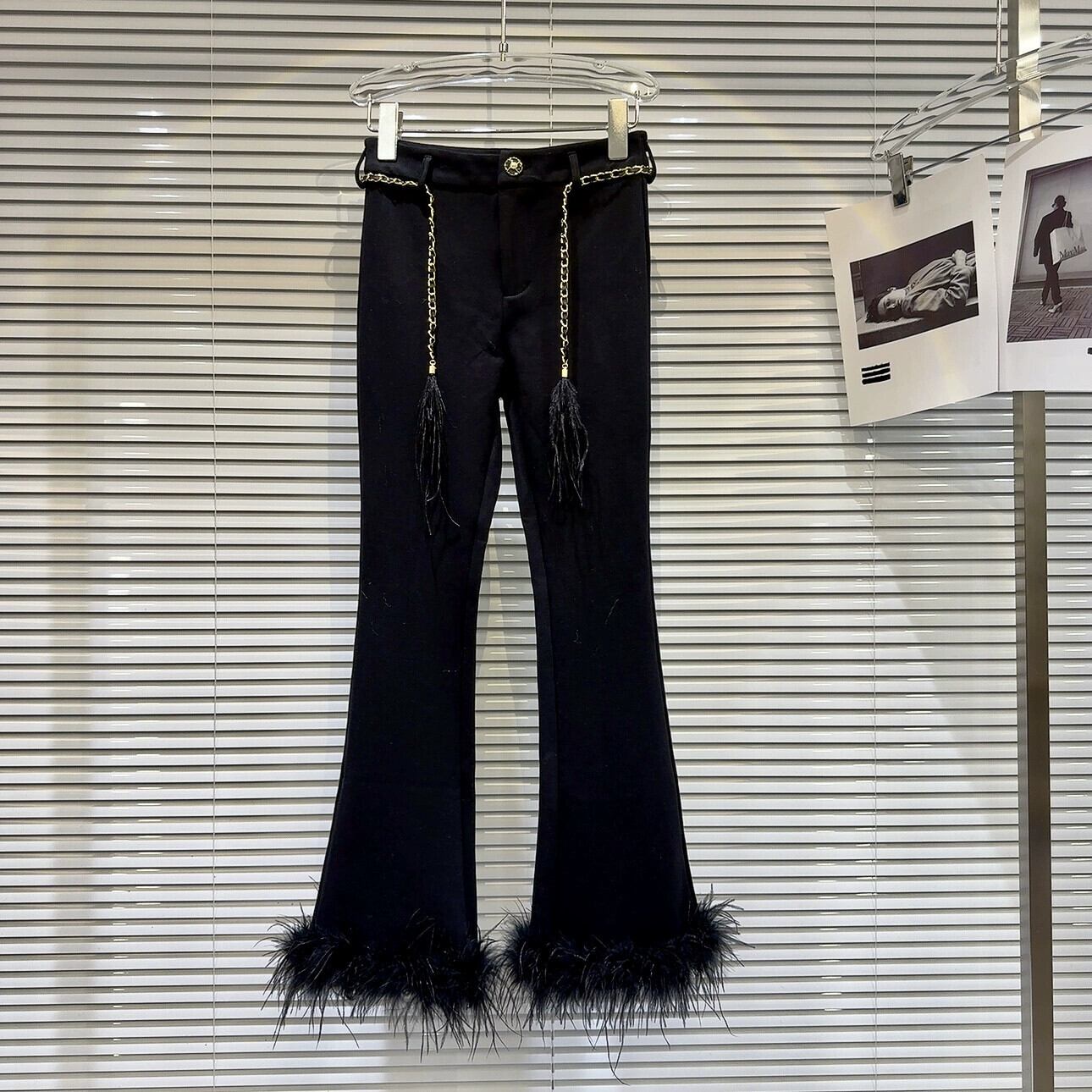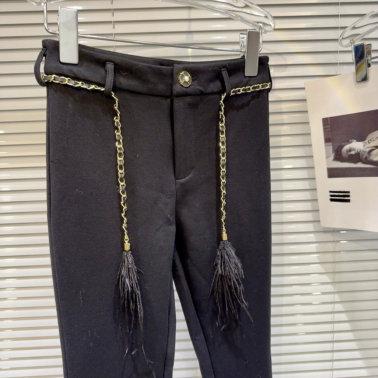インターネットセレブと同じスタイル 2024 冬の新スタイルニッチセレブメタルウエストチェーンフェザーパンツダークスリムフィット女性のパンツ ウィンター 冬物 gyan3334522180184 | vestitialla