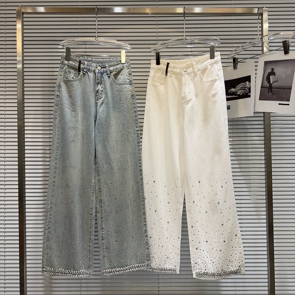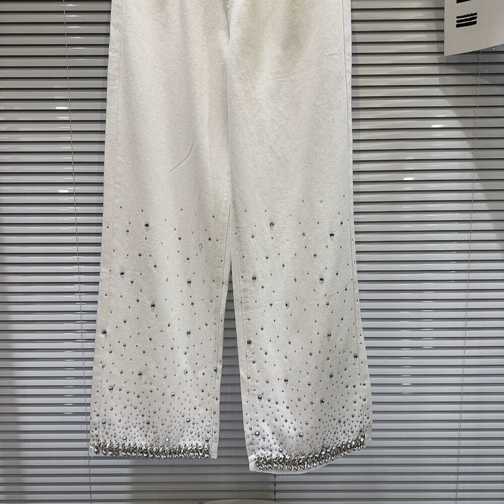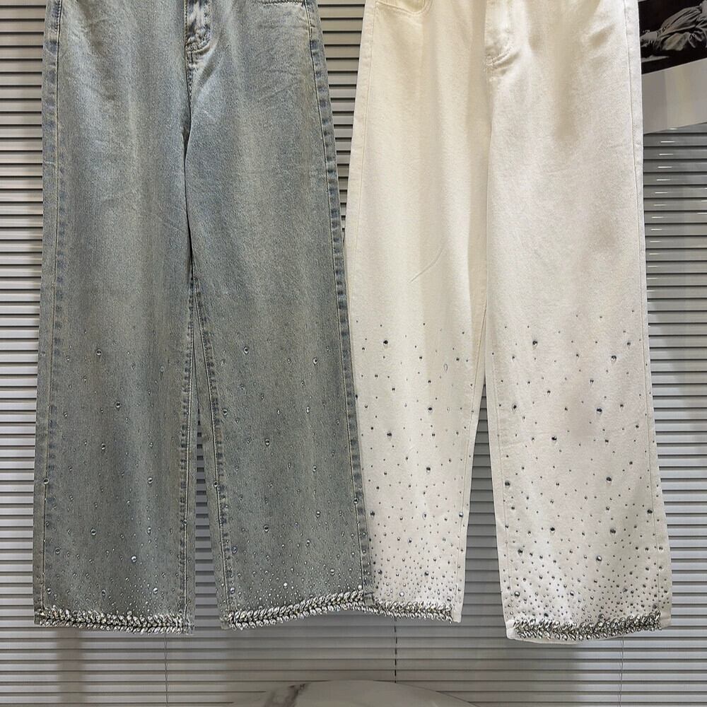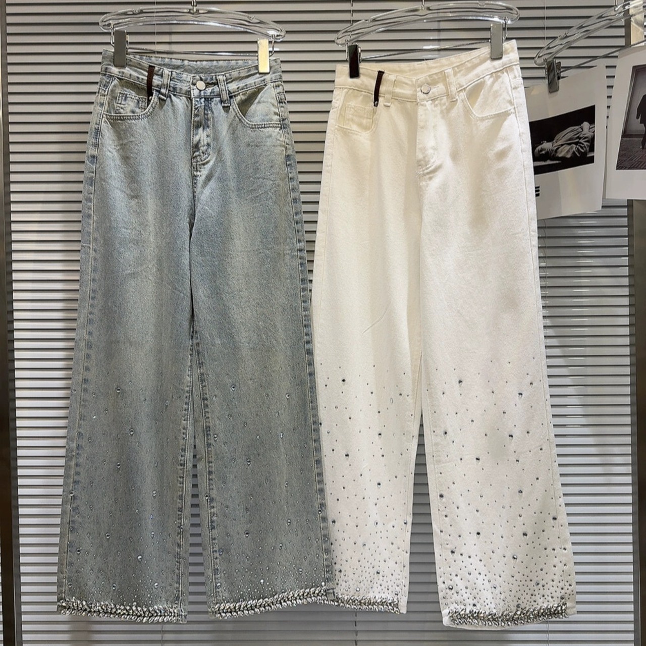 ネット有名人同スタイル2024春新作ニッチスタイルラインストーングラデーションダイヤモンドウォッシュ加工ストリートデニムワイドレッグパンツ スプリング 春物 ワイドパンツ gyan3317401901015 | vestitialla