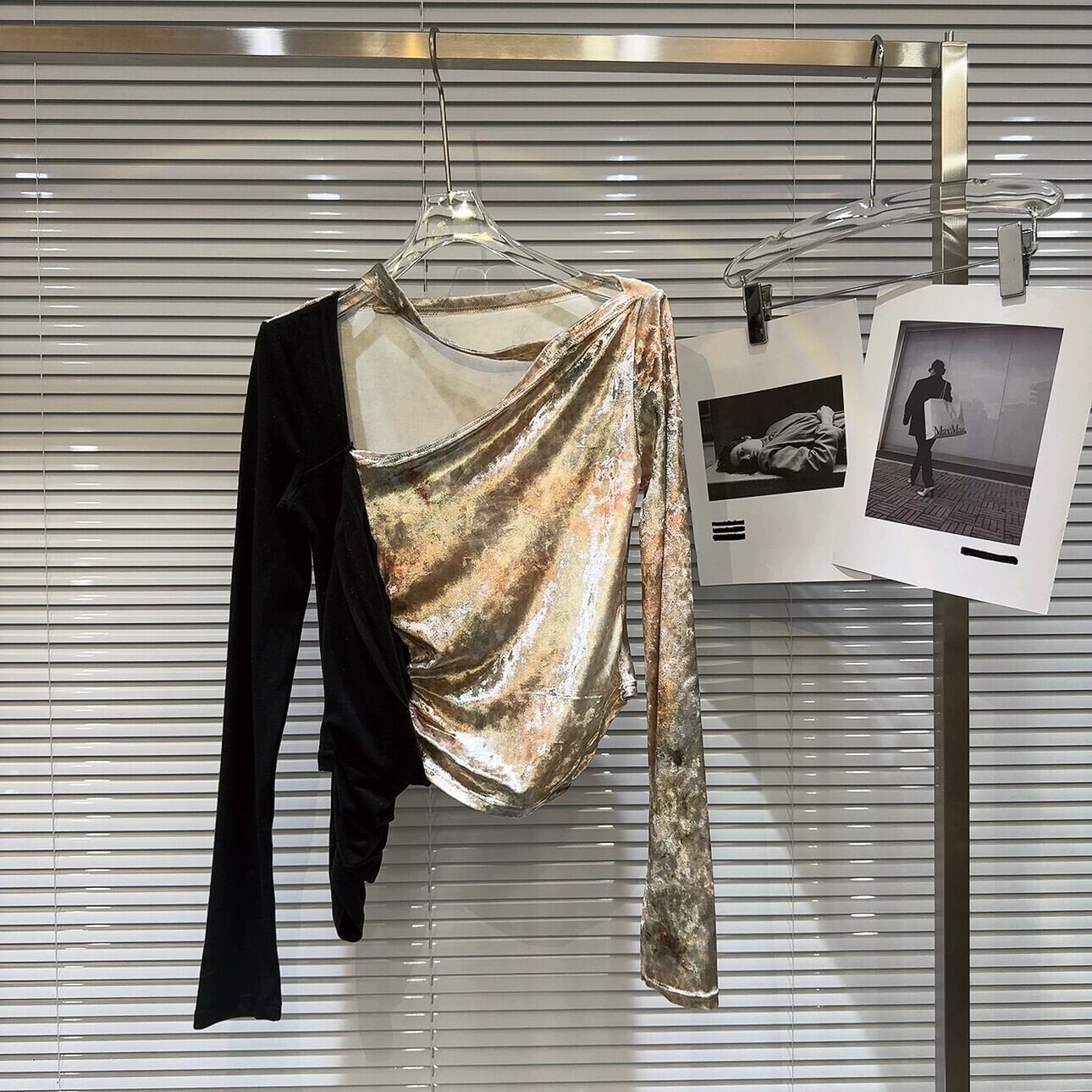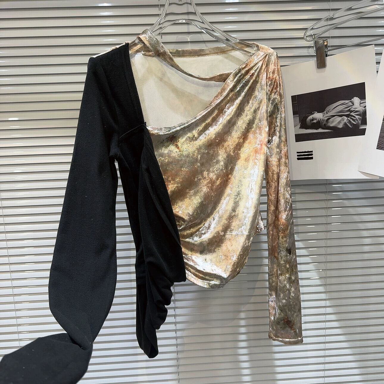 インターネット有名人同じスタイル 2024 冬の新スタイルニッチ中空ネックデザインベルベットスプライシングデザイン Tシャツ女性 ウィンター 冬物 gyan3324433161818 | vestitialla