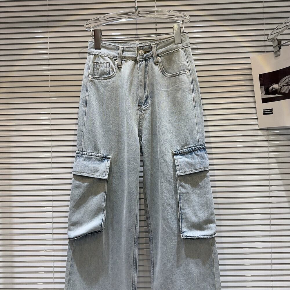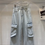 ネット有名人同スタイル2024春新スタイルサイドポケットオーバーオールウォッシュホワイト空挺部隊デニムストレートパンツ スプリング 春物 gyan3363107518900 | vestitialla