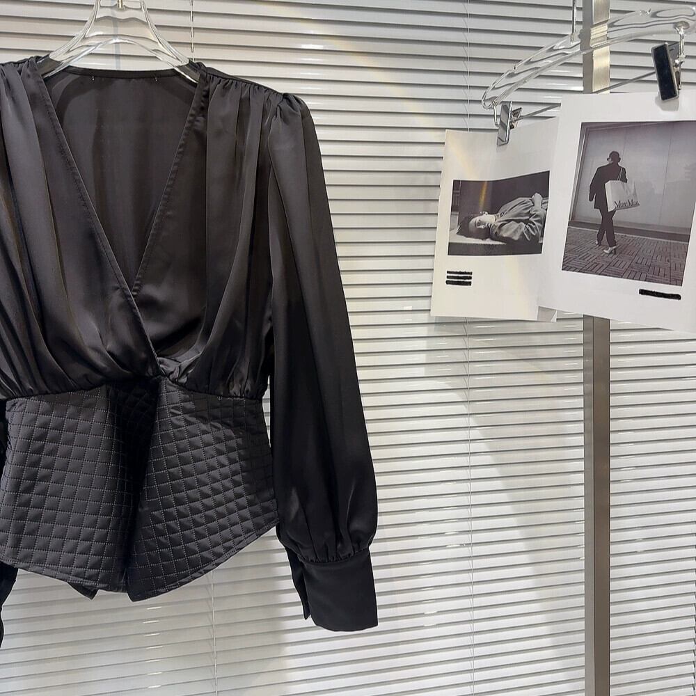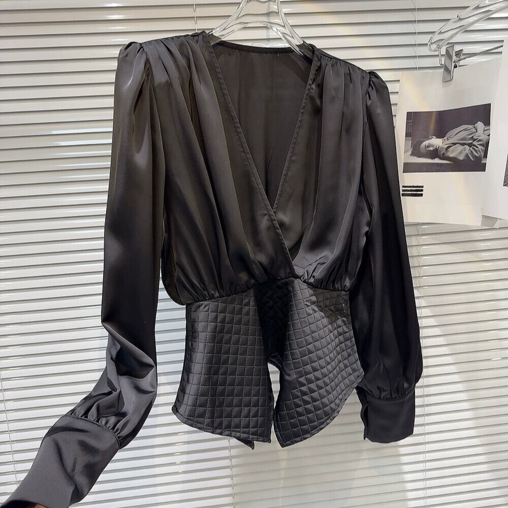 インターネットセレブと同じスタイル 2024 春の新スタイル小さな香り V ネックシフォンパッチワークウエストスタイルレディシャツシャツ女性 スプリング 春物 Vネック gyan3361688357031 | vestitialla
