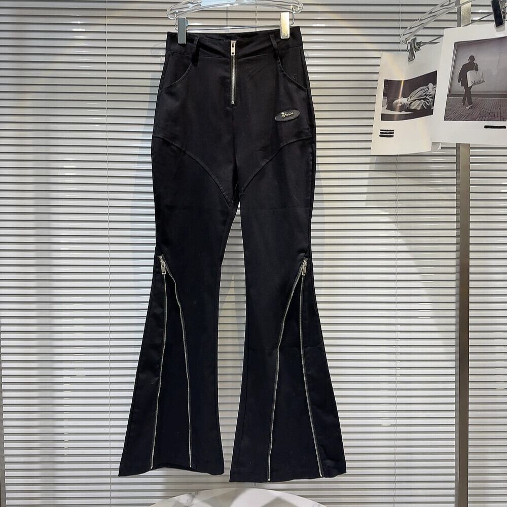 インターネット有名人の同じスタイル 2024 春の新しいニッチスタイルのズボン、斜めジッパーデザインのワークウェアマイクロフレアカジュアルパンツ女性 スプリング 春物 gyan3375857067114 | vestitialla
