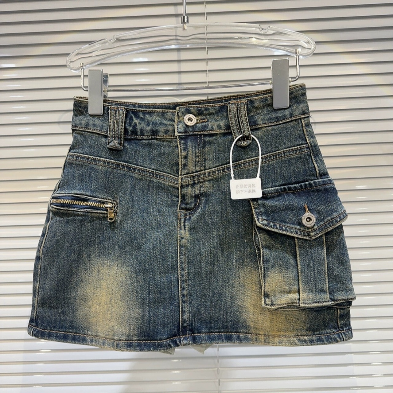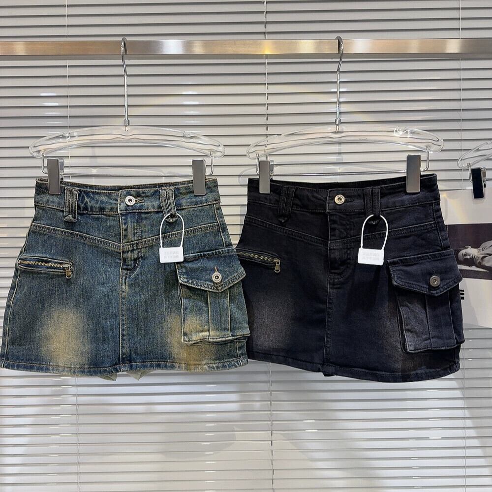 インターネット有名人の同じスタイル2024春の新しいニッチワークウェアポケットレトロウォッシュ加工デニムショートスカートヒップスカート スプリング 春物 gyan3329990998252 | vestitialla