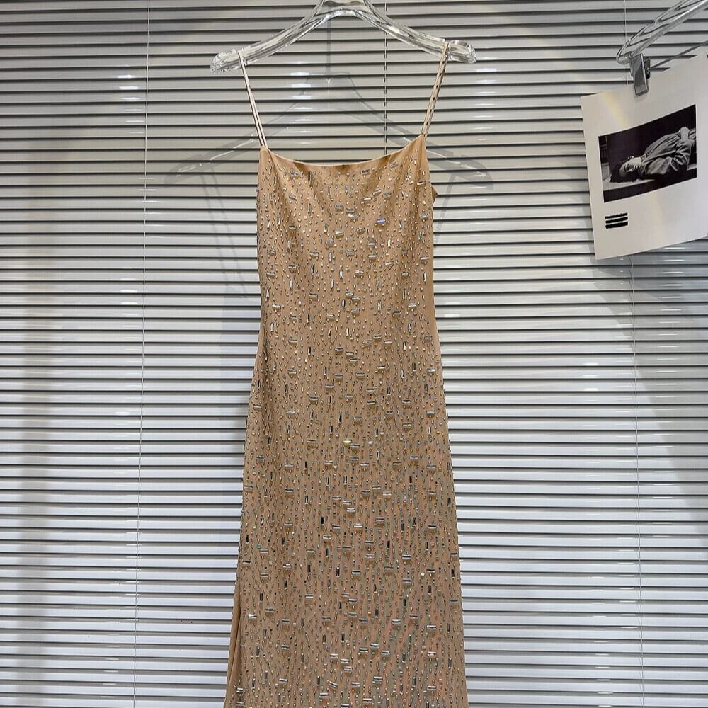 インターネット有名人同じスタイル 2024 春の新しい気質社交家重工業ラインストーンビーズデザインロングサスペンダードレス女性 スプリング 春物 gyan3370093053543 | vestitialla
