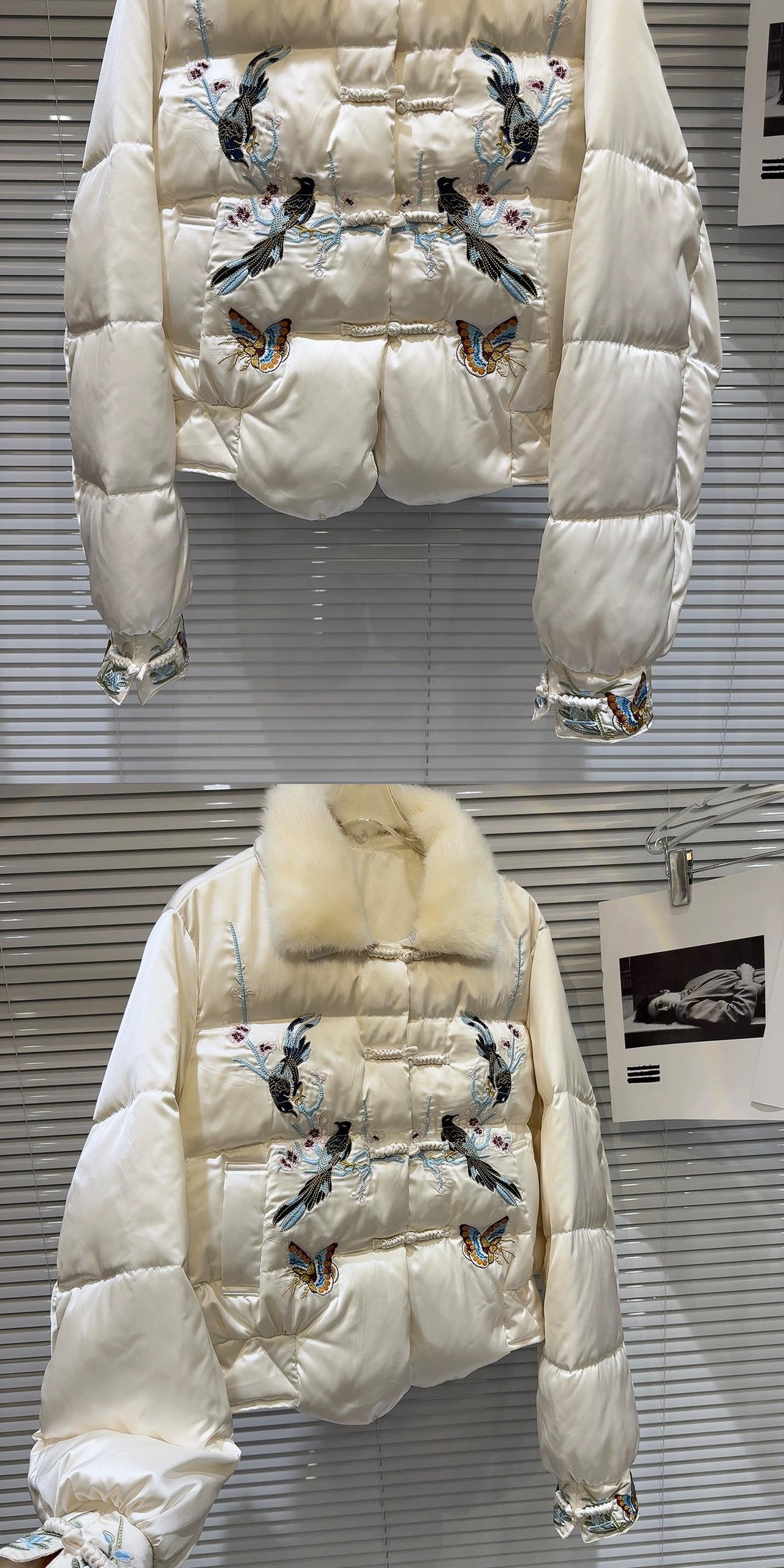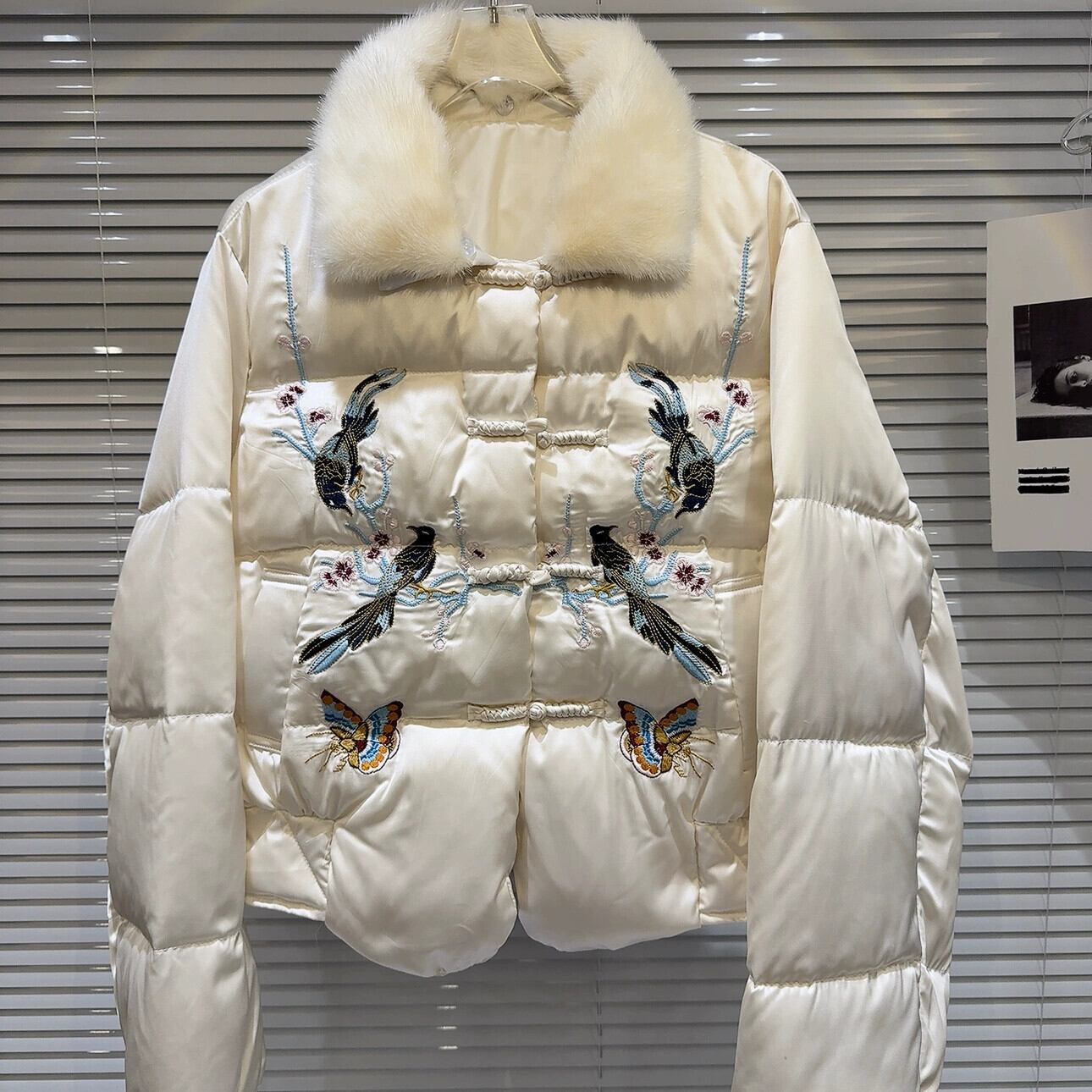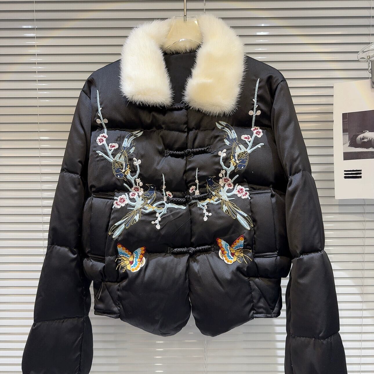 インターネット有名人の同じスタイル 2024 冬の新しいミンクの毛皮の襟花刺繍ディスクバックルサテン暖かいダウンジャケット レッド ウィンター 冬物 フラワーデザイン gyan3365825389775 | vestitialla