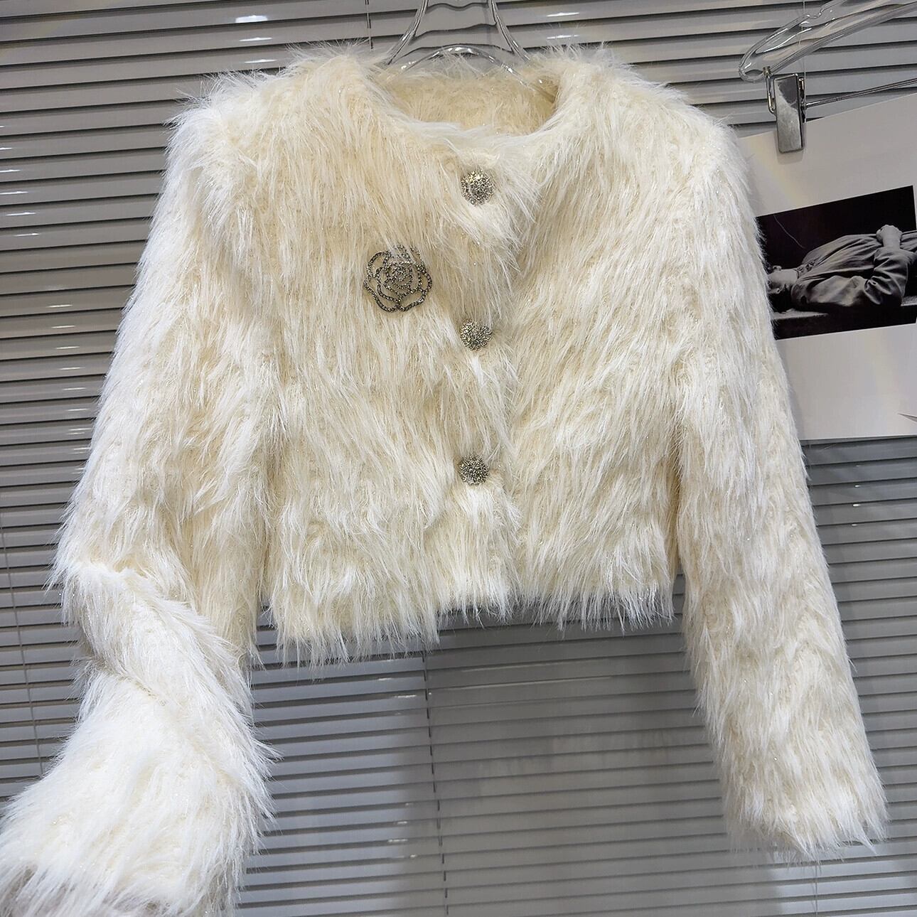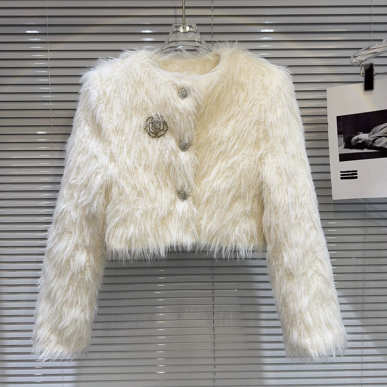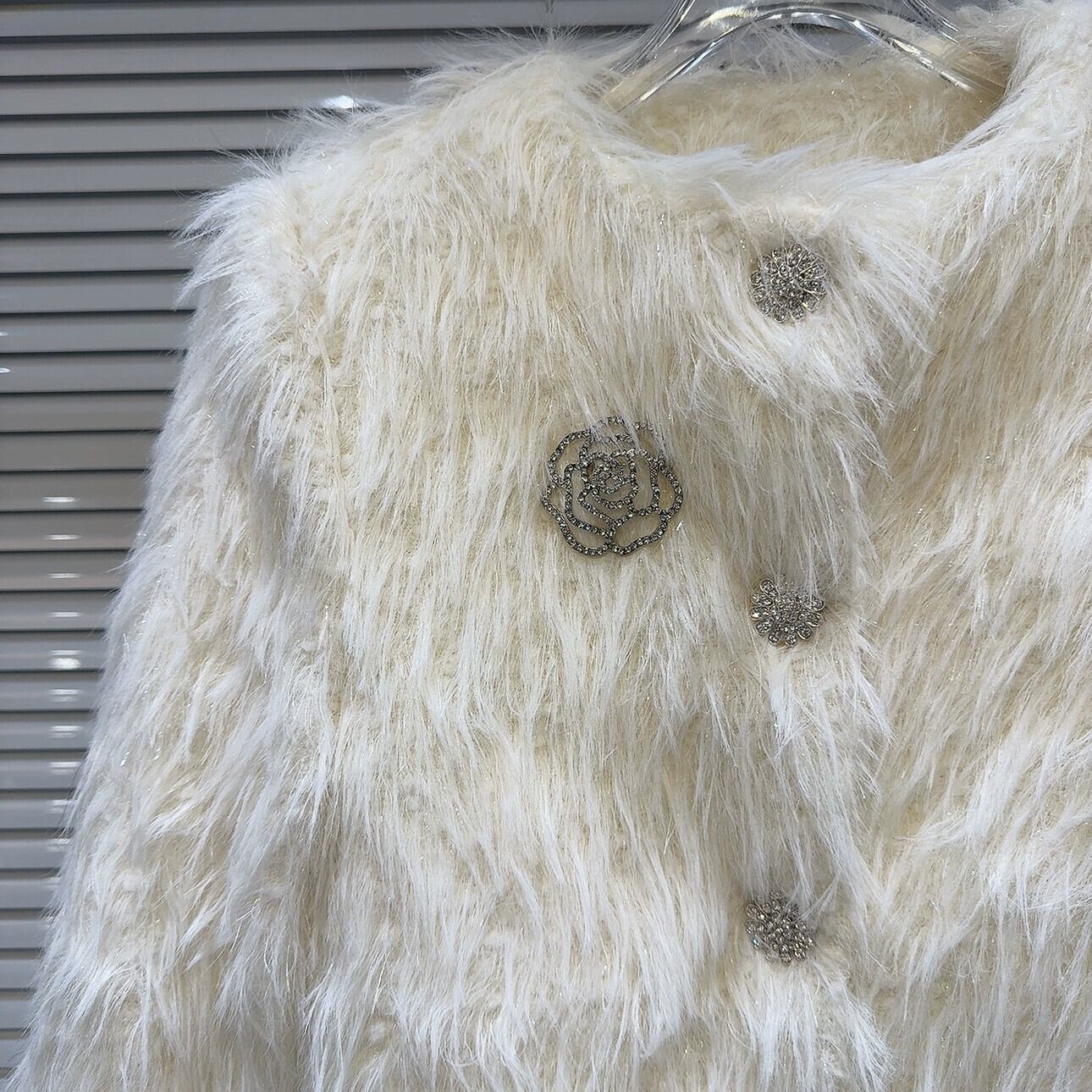 ネット有名人の同じスタイル 2024 新しい冬スタイル小さな香りスタイル高精細ダイヤモンドフラワーブローチダウン裏地環境に優しい毛皮のコートの女性 ウィンター 冬物 フラワーデザイン gyan3324225494918 | vestitialla