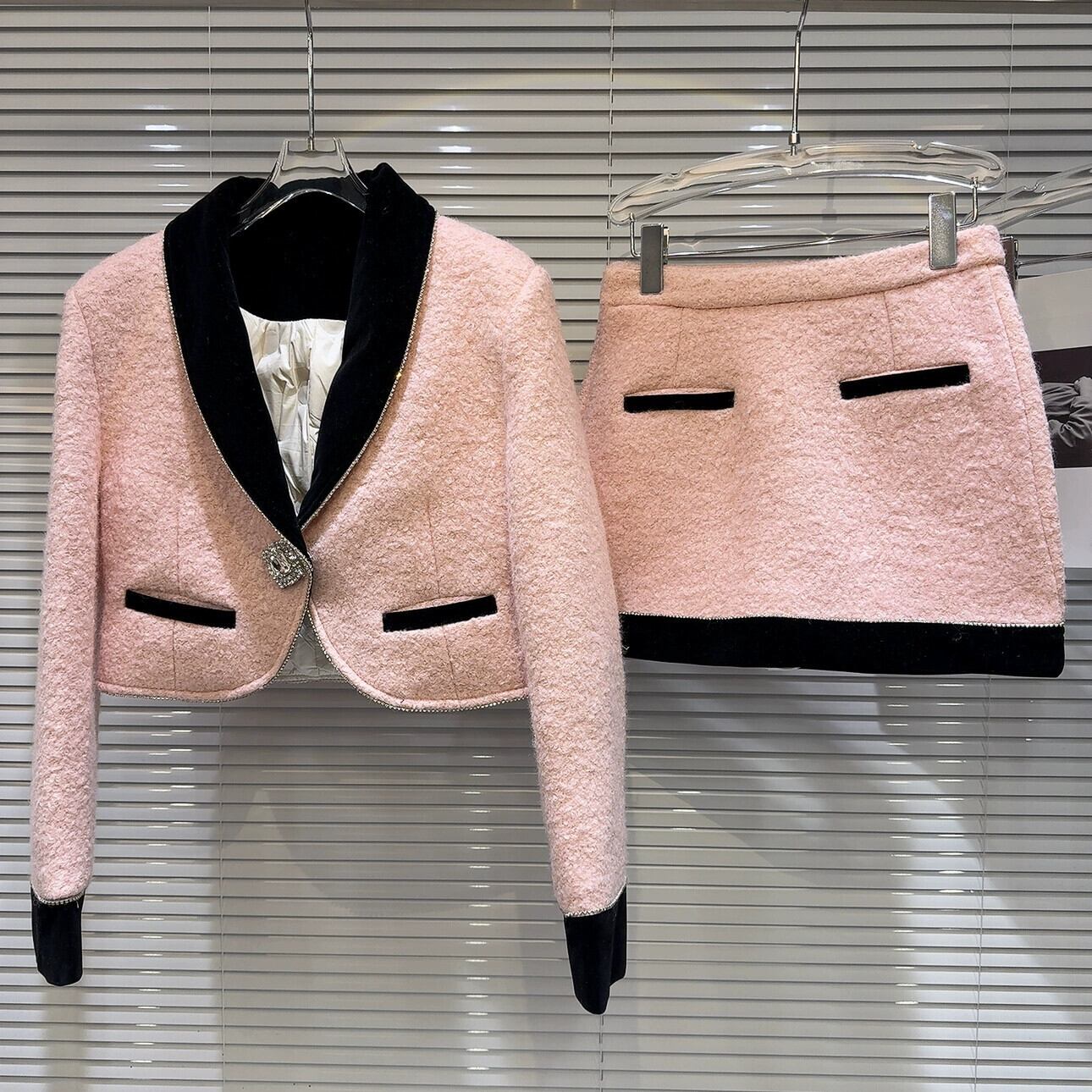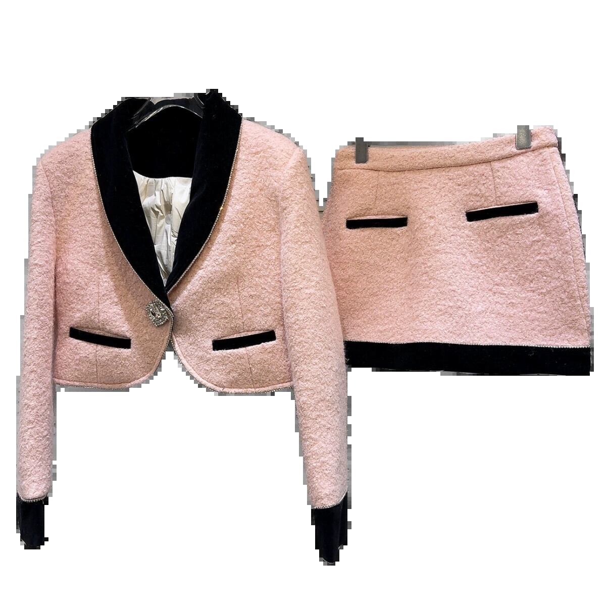 インターネット有名人の同じ2024冬の新しいスタイルの小さな香りの良いラインストーンエッジカラーダウン裏地ジャケット+スカートウールスーツ ウィンター 冬物 gyan3342182654914 | vestitialla