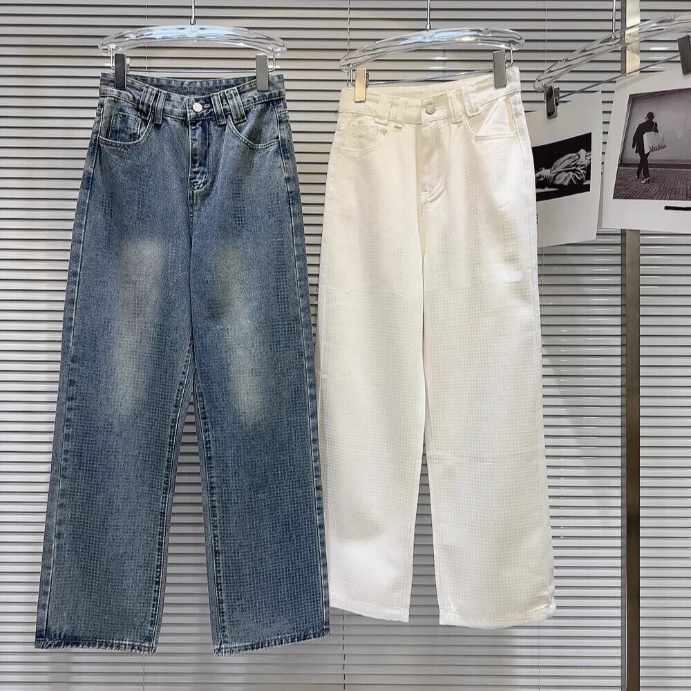 インターネットセレブと同じスタイル 2024 春の新しいニッチスタイルダークパターン無地ルーズで多用途なストレートジーンズ女性 スプリング 春物 ソリッドカラー gyan3374939356237 | vestitialla
