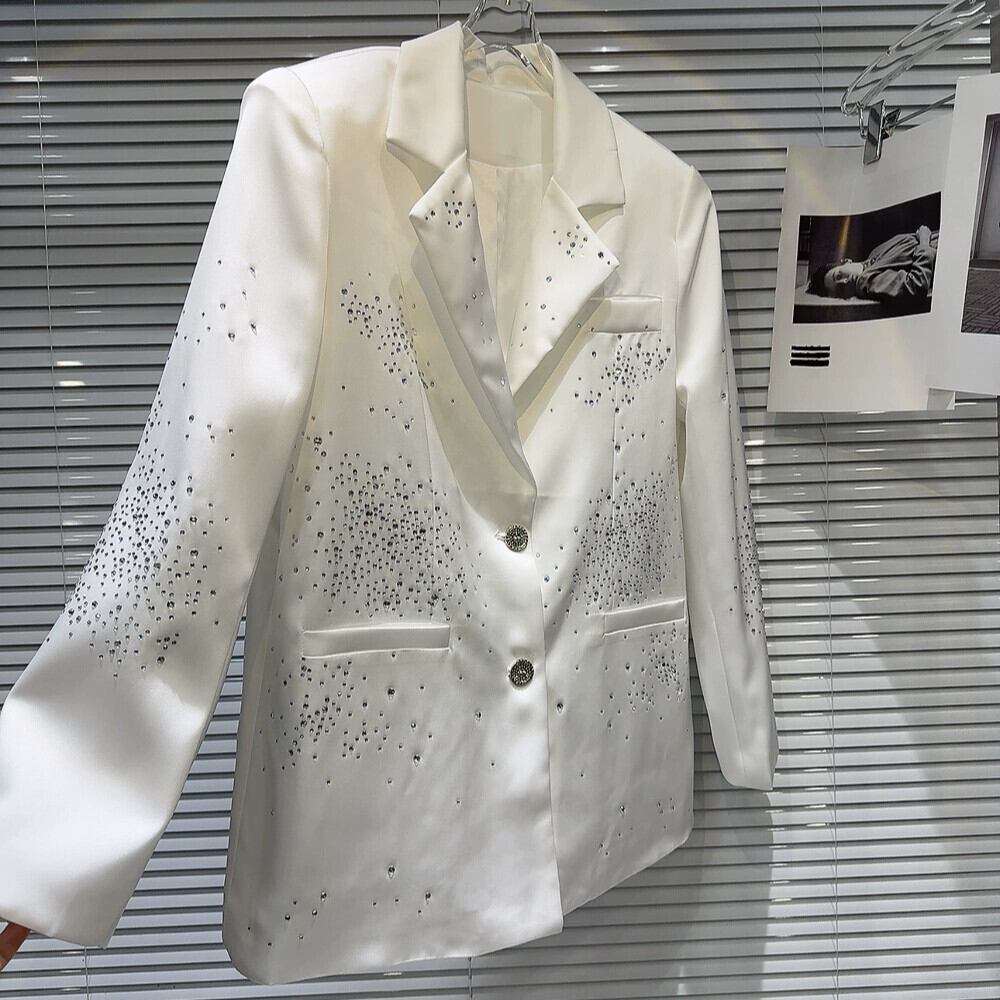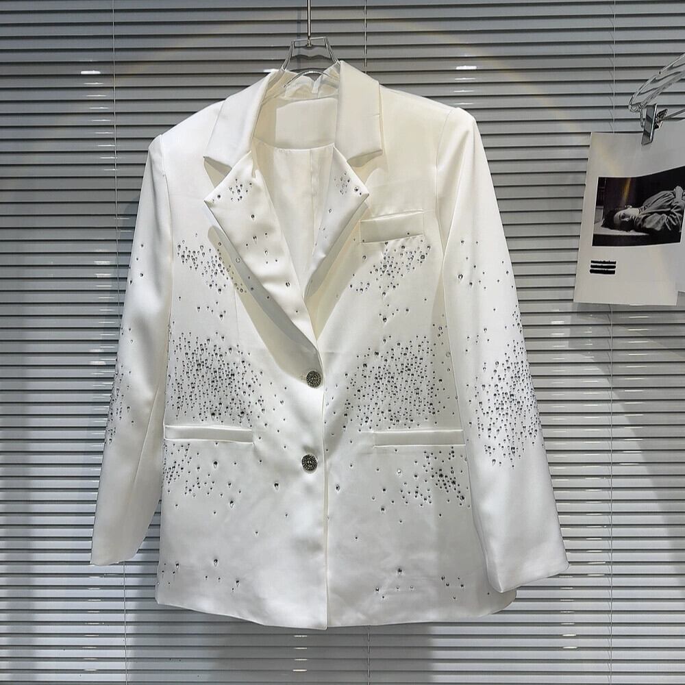 インターネット有名人の同じスタイル 2024 春の新しいニッチスタイル花火ラインストーンダイヤモンドパターン重工業サテンスーツスーツ女性 スプリング 春物 gyan3373990995670 | vestitialla