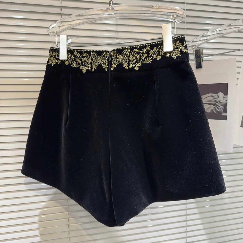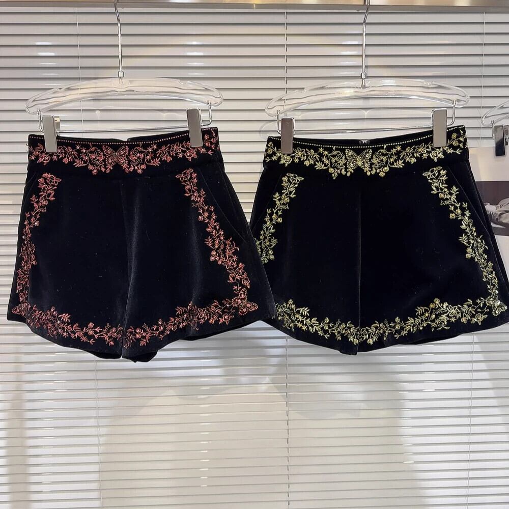 インターネット有名人の同じ2024春の新スタイルフレンチスタイル手刺繍エッジデザインベルベットスリーポイントショーツとブーツパンツ レッド スプリング 春物 ブルマー gyan3339750387557 | vestitialla