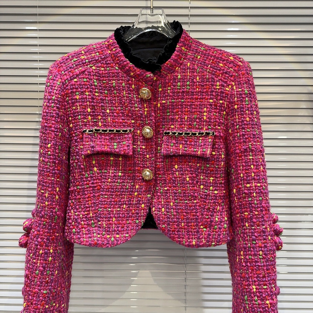 インターネットセレブの同じスタイル2024初春の新しい小さな香りのスタイルメタルバックルカラフルなツイードリボンスリーブセレブショートコート スプリング 春物 gyan3374687232773 | vestitialla