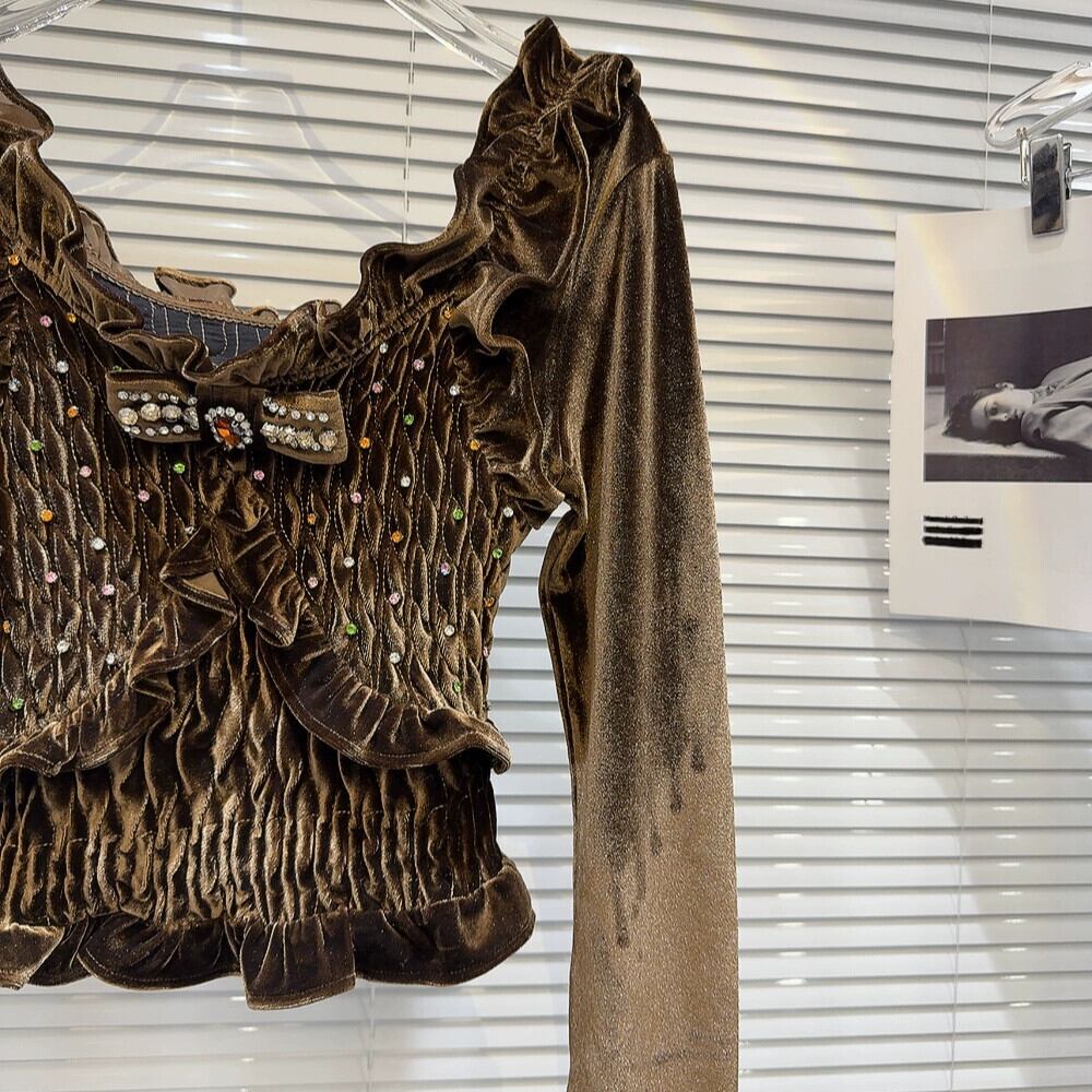 インターネットセレブの同じスタイル2024春の新しいニッチセレブリボンプリーツレースベルベット長袖Tシャツ小さなシャツ ロング スプリング 春物 gyan3366631311166 | vestitialla