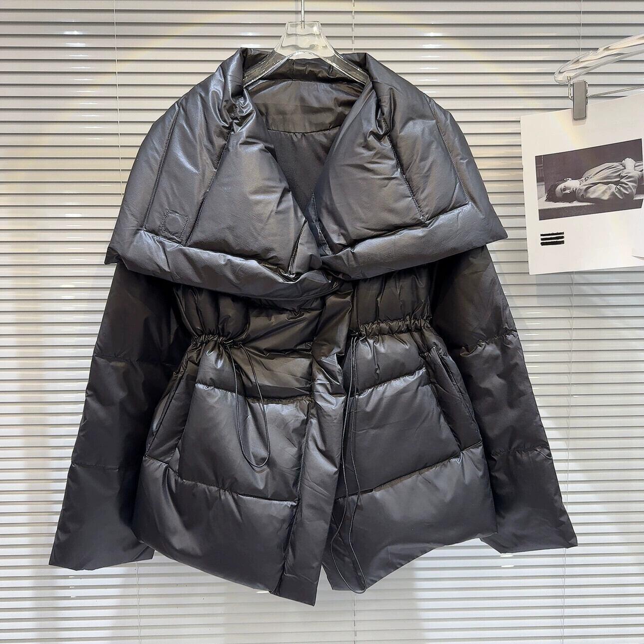 ネット有名人の同じスタイル 2024 冬の新しいストリートスタイル大きなラペル巾着ウエストデザイン暖かいダウンジャケット女性 ウィンター 冬物 gyan3398028340395 | vestitialla