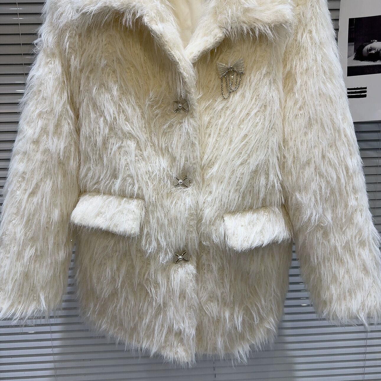 インターネット有名人の同じスタイル 2024 冬の新しいスタイルの小さな香りの蝶ネクタイピンダウン裏地模造毛皮の豪華なジャケット リボン ウィンター 冬物 gyan337183425359 | vestitialla