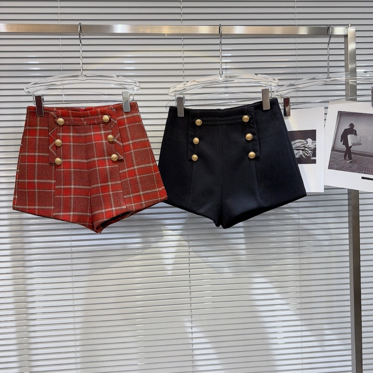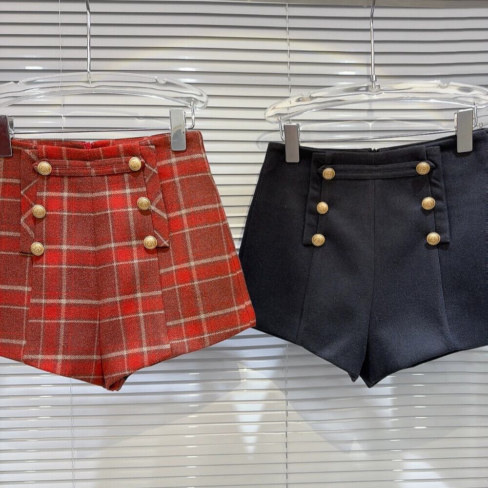 インターネットセレブの同じスタイル 2024 新しい冬スタイル小さな香りのスタイル二列金属バックルウールチェック柄気質セレブショーツブーツパンツ女性 靴 シューズ ウィンター 冬物 ブルマー gyan3349339306163 | vestitialla