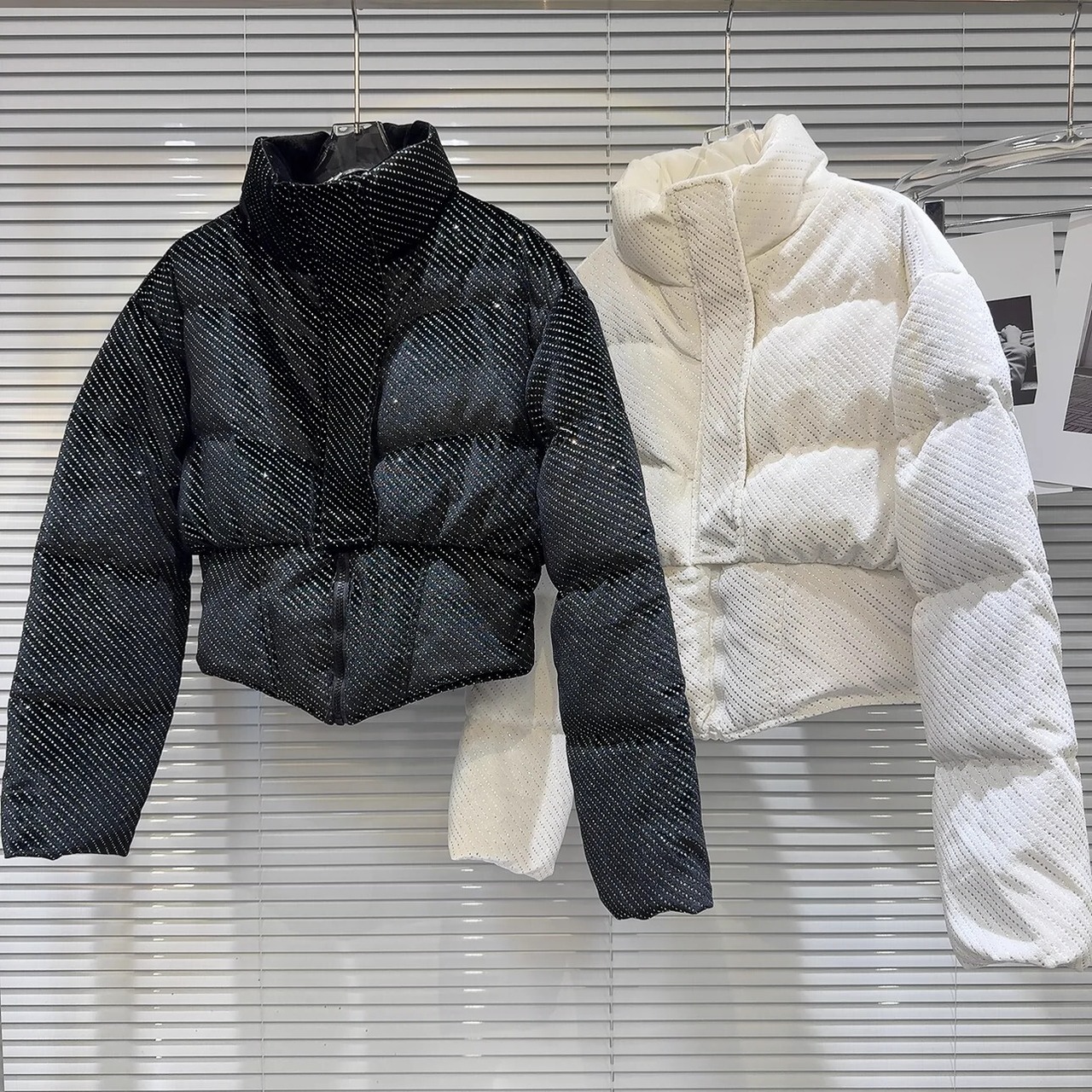 ネットセレブ同様2024冬新作ニッチブライトシルク斜めストライプダイヤモンドスエードショートダウンジャケット スウェード ウィンター 冬物 gyan3376798259097 | vestitialla