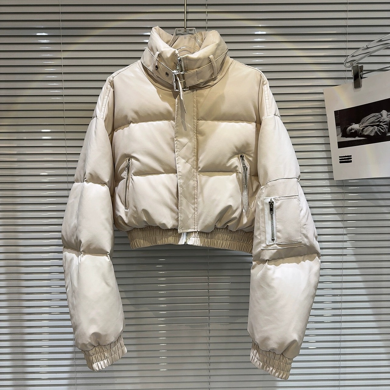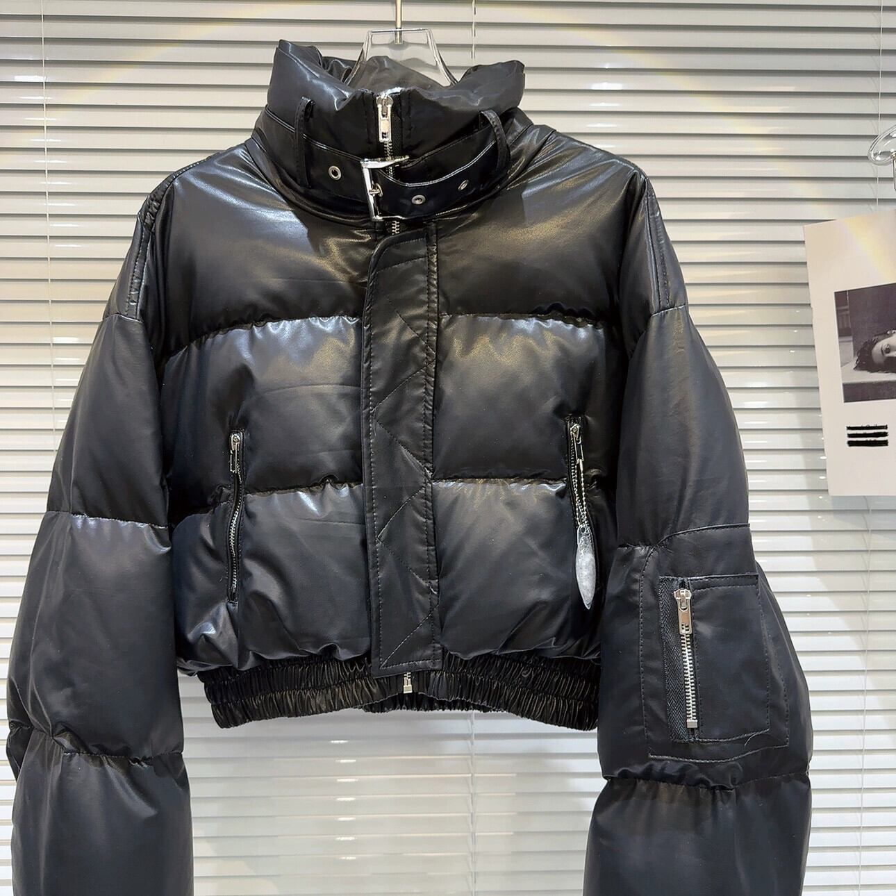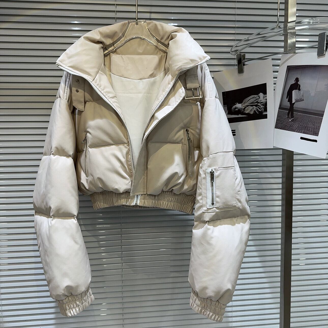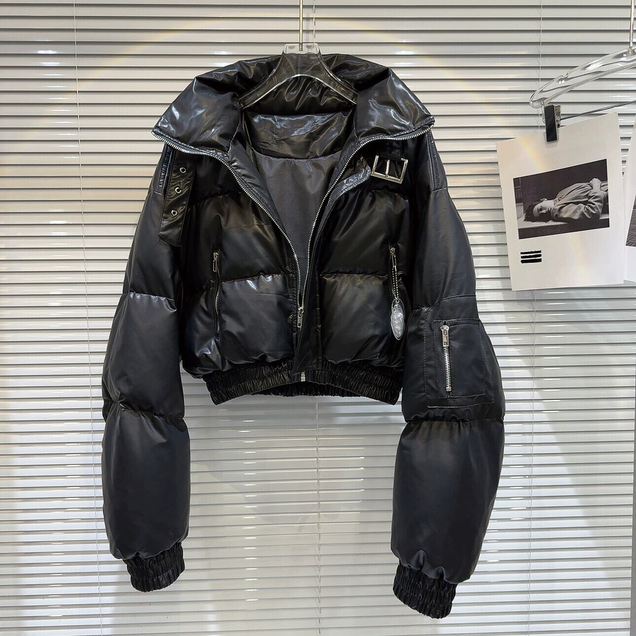 インターネットセレブと同じスタイル 2024 冬の新しいニッチストリートスタイルベルトバックル襟 PU レザーダウンジャケット ウィンター 冬物 ハーネス gyan3324604237921 | vestitialla