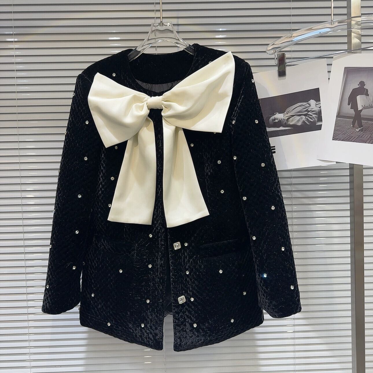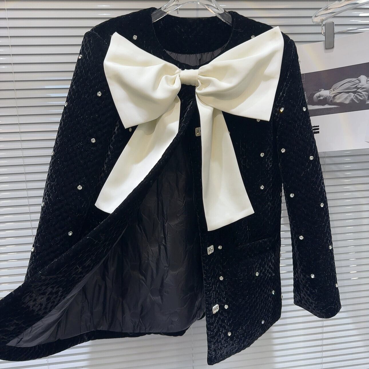 インターネットセレブの同じスタイル2024冬新スタイルセレブ大きな蝶ネクタイラインストーンビーズダウンライナーウインドブレーカージャケット リボン ウィンター 冬物 gyan3396372157106 | vestitialla