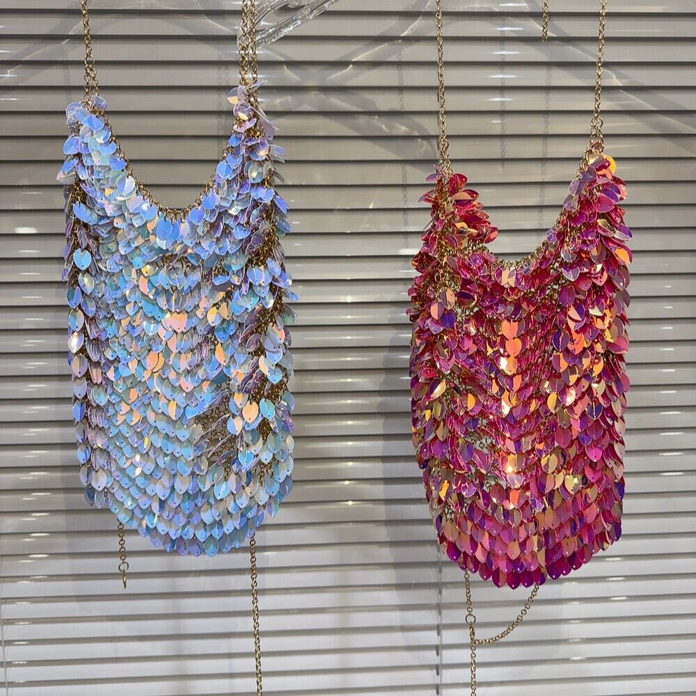 インターネットセレブと同じスタイル 2024 春の新重工業カラー愛スパンコールチェーンホルターデザインパーマスキャミソール スプリング 春物 gyan3362148783824 | vestitialla