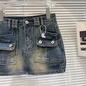インターネットセレブと同じスタイル 2024 春の新アメリカンレトロポケットウォッシュ加工デニムショートスカートヒップスカート女性 スプリング 春物 gyan3384728177170 | vestitialla
