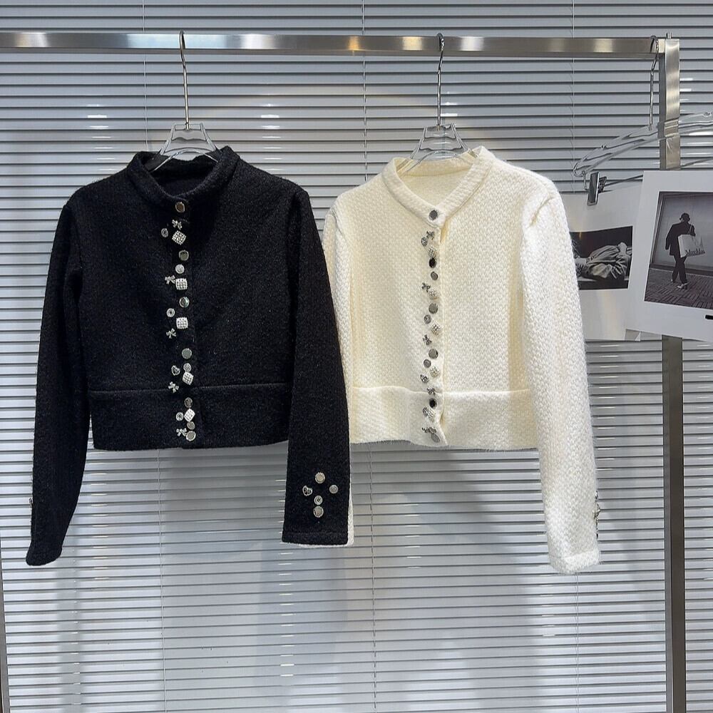 ネット有名人の同じスタイル 2024 春の新スタイルの小さな香りのスタイルの金属の弓のバックル装飾ツイード気質ショートコートの女性 リボン スプリング 春物 gyan3322620445235 | vestitialla