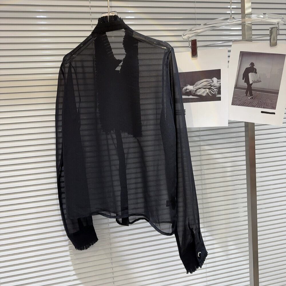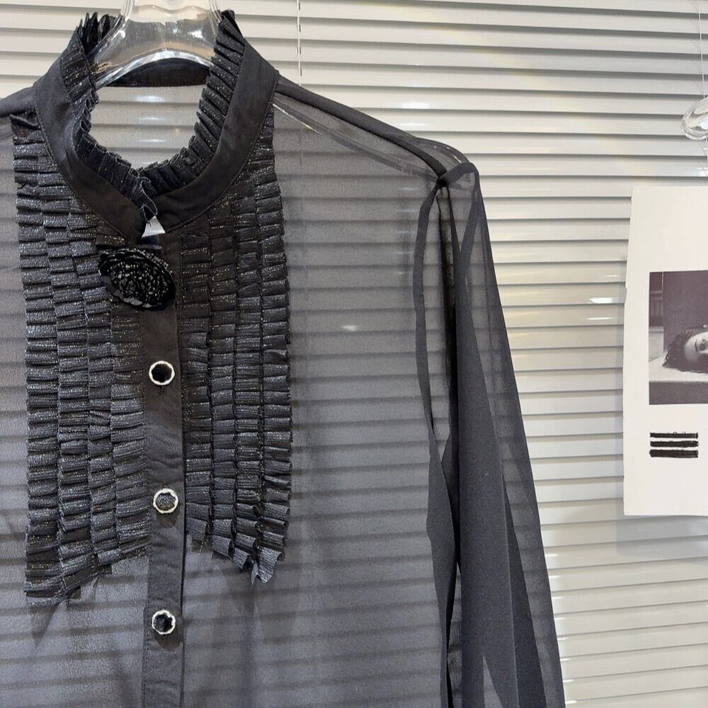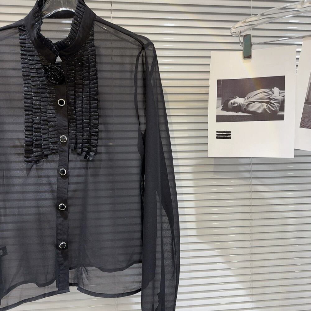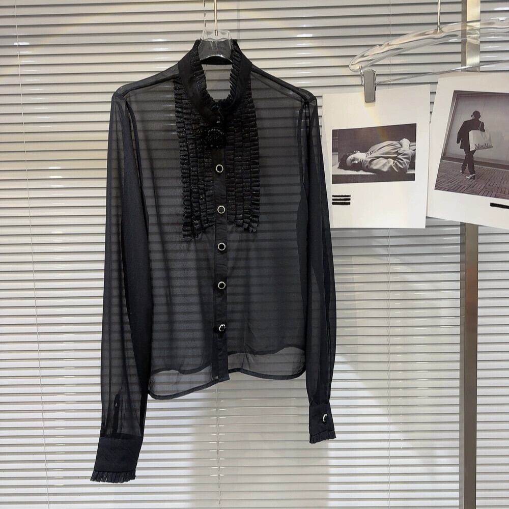 インターネットセレブと同じスタイル 2024 春の新スタイル小さな香りのプリーツ襟デザインエレガントな女性のメッシュシャツシャツ女性 スプリング 春物 gyan3373626931888 | vestitialla