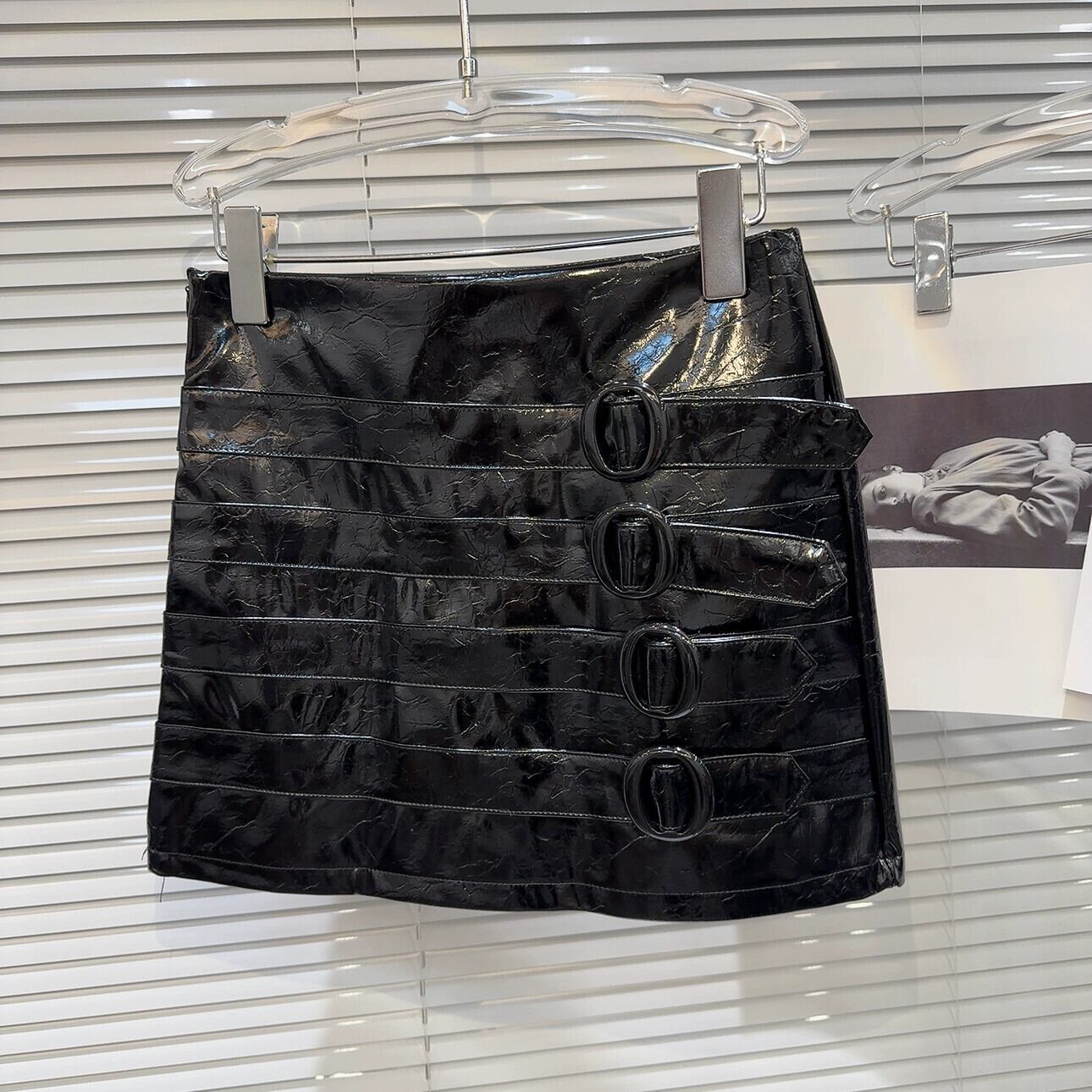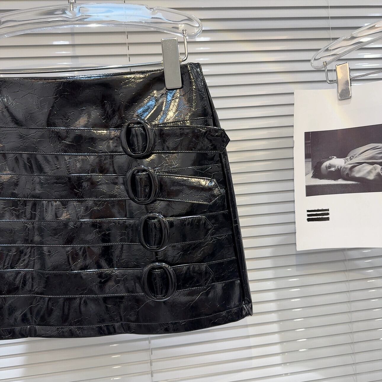 インターネット有名人同じスタイル 2024 春の新ダークベルトストラップ明るい質感 PU レザーショートスカートヒップスカート女性 スプリング 春物 ハーネス gyan3360169254189 | vestitialla