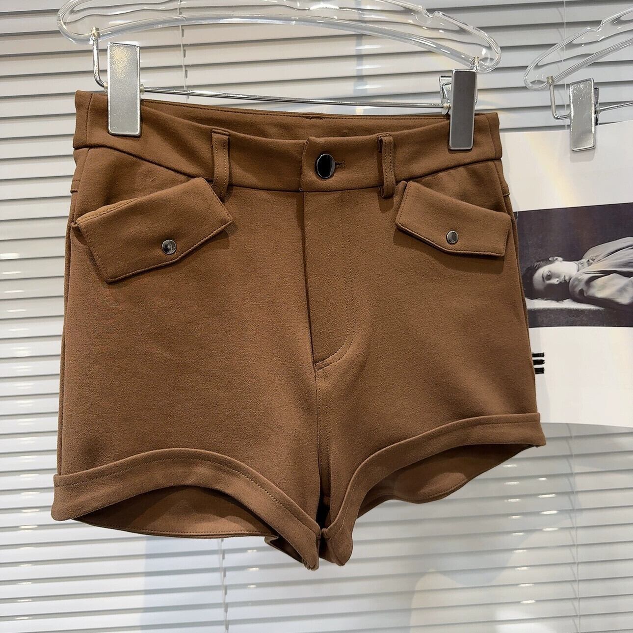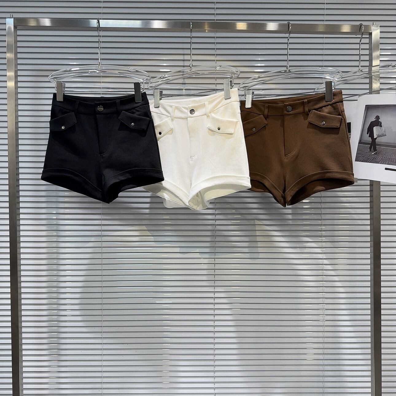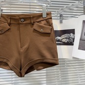 インターネット有名人の同じスタイル 2024 春夏の新しいスタイルの小さな香りのよい湾曲したズボン裾デザイン無地ストレッチ綿七分丈ショーツ女性 コットン スプリング 春物 サマー 夏物 ブルマー ソリッドカラー gyan3345680603597 | vestitialla