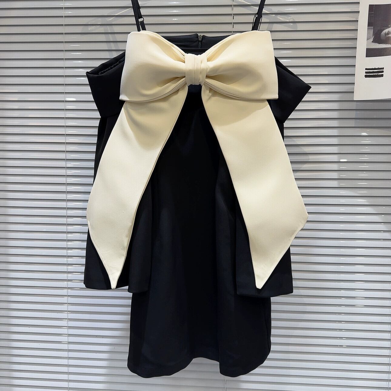 インターネット有名人の同じスタイル 2024 春夏の新スタイル小さな香りの良いスタイル大きなリボン装飾社交界のワンショルダー サスペンダー ドレスの女性 スプリング 春物 サマー 夏物 gyan3310764000034 | vestitialla