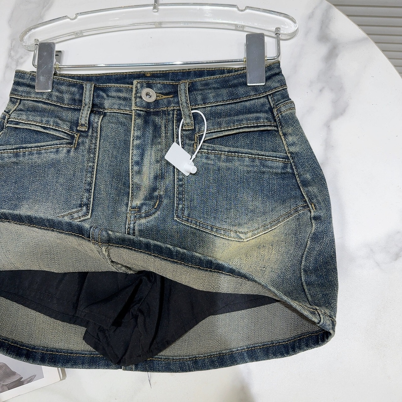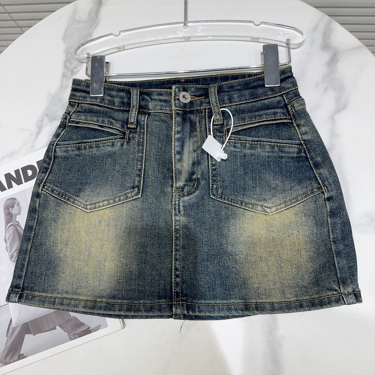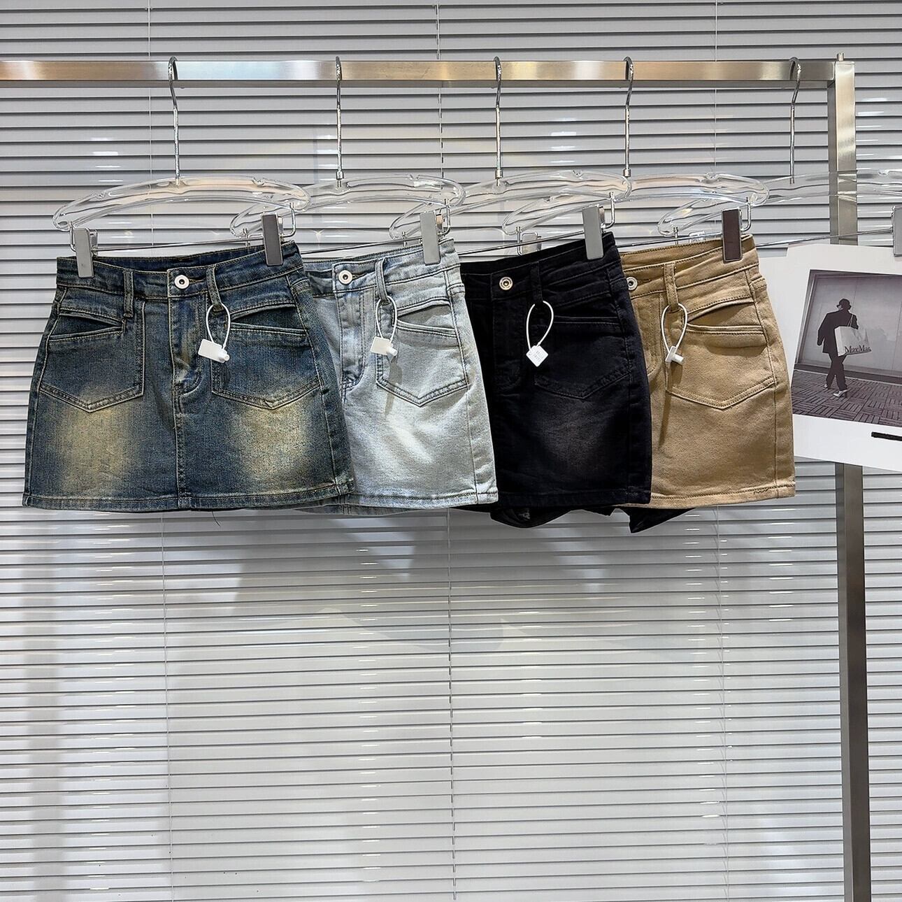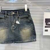 インターネット有名人の同じスタイル 2024 春夏の新しいアメリカンレトロポケットウォッシュ加工ワークウェアデニムショートスカートヒップスカート女性 スプリング 春物 サマー 夏物 gyan3362366388097 | vestitialla