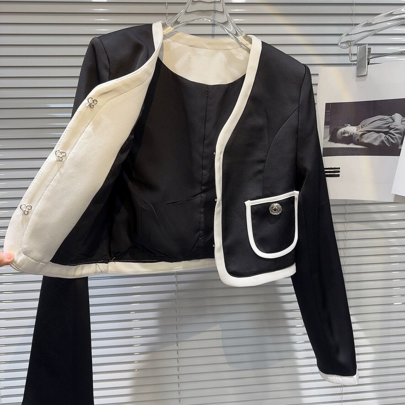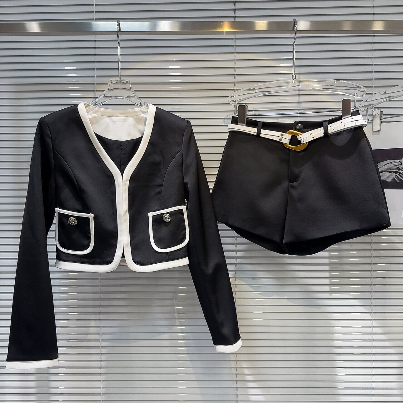 インターネット有名人の同じスタイル 2024 春の新スタイルの小さな香りのスタイルのメタルバックルコントラストエッジショートジャケット + ベルトショーツスーツ女性 スプリング 春物 ハーネス ブルマー gyan3375028834466 | vestitialla