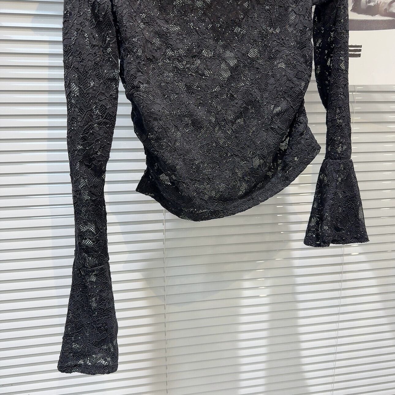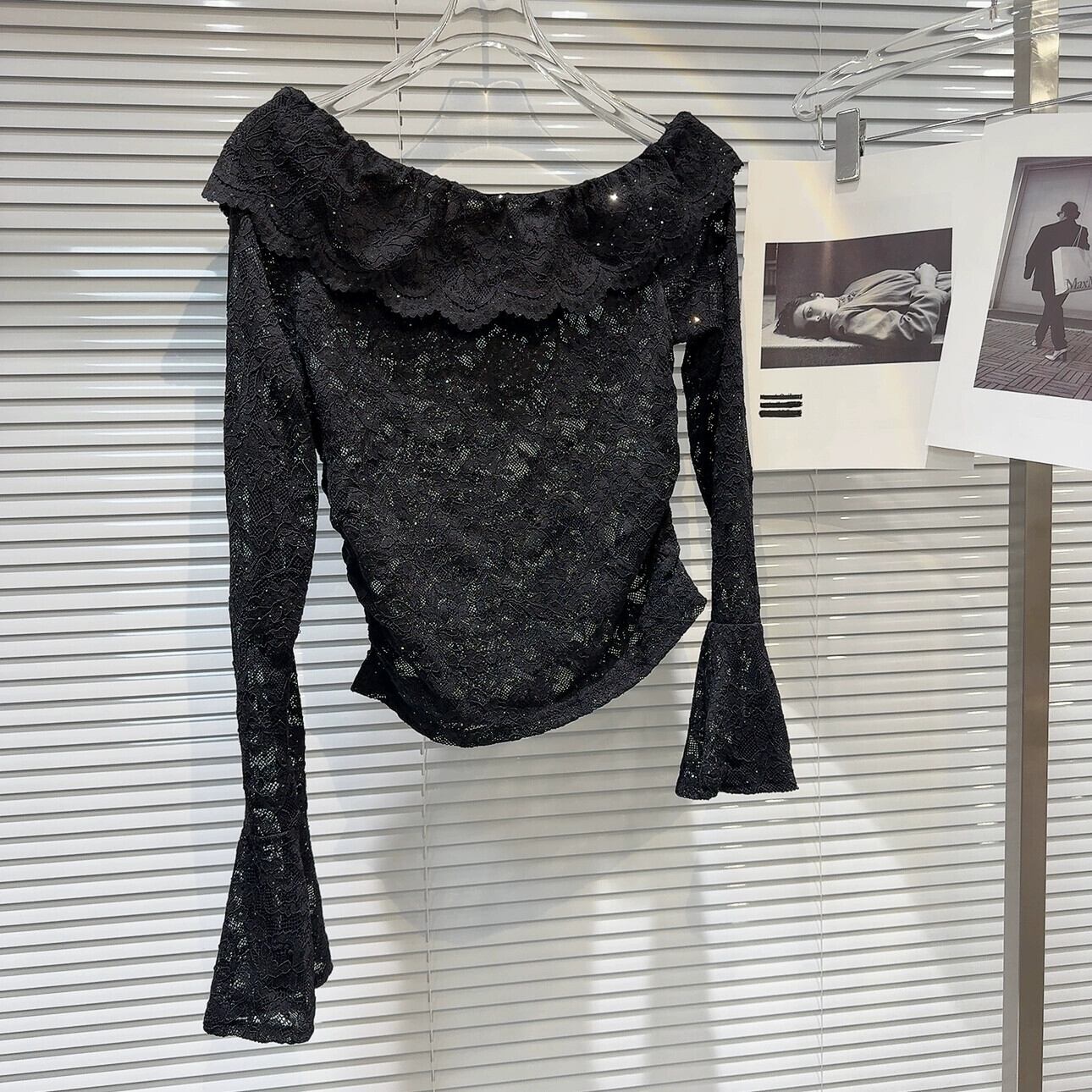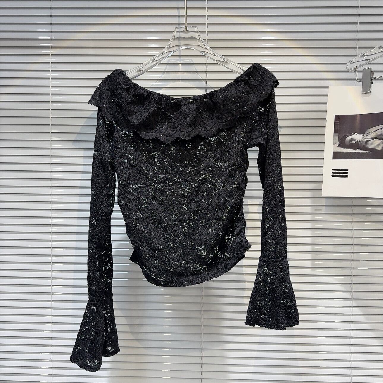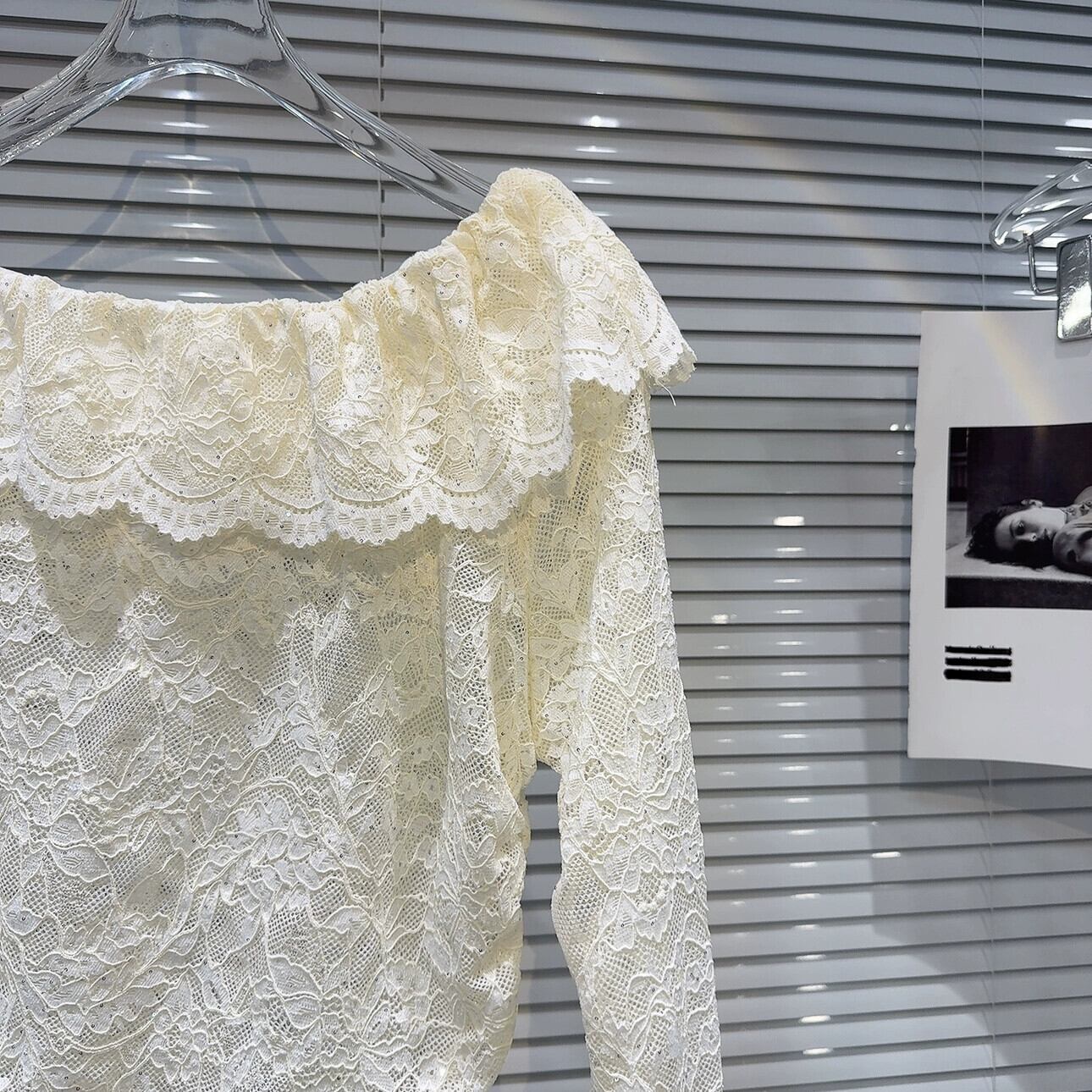ネット有名人の同じスタイル 2024 春夏新スタイル小さな香りのスタイル一言レース襟デザインエレガントな女性のレースのシャツ小さなシャツの女性 スプリング 春物 サマー 夏物 gyan3337624955230 | vestitialla