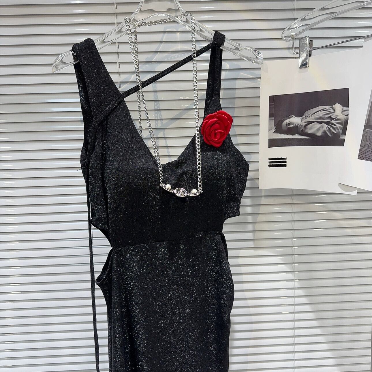 インターネットセレブと同じスタイル2024夏の新しいスタイルダークセレブレッドローズネックレスウエストと胸パッドサスペンダードレス レース サマー 夏物 gyan3341900638541 | vestitialla