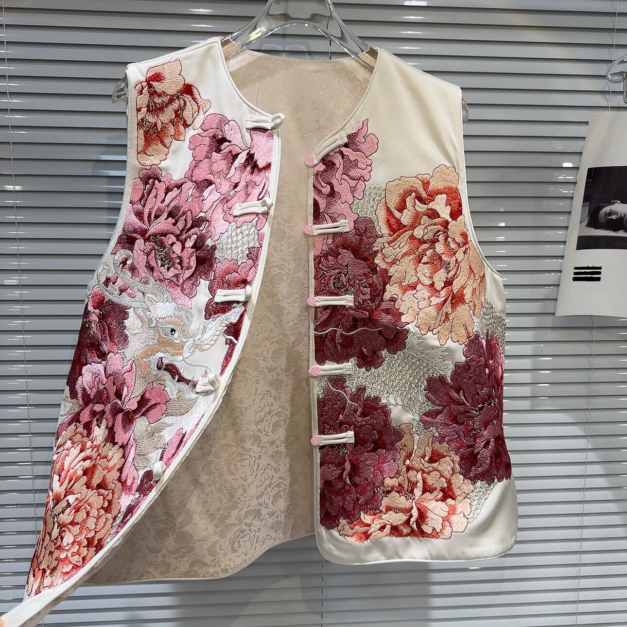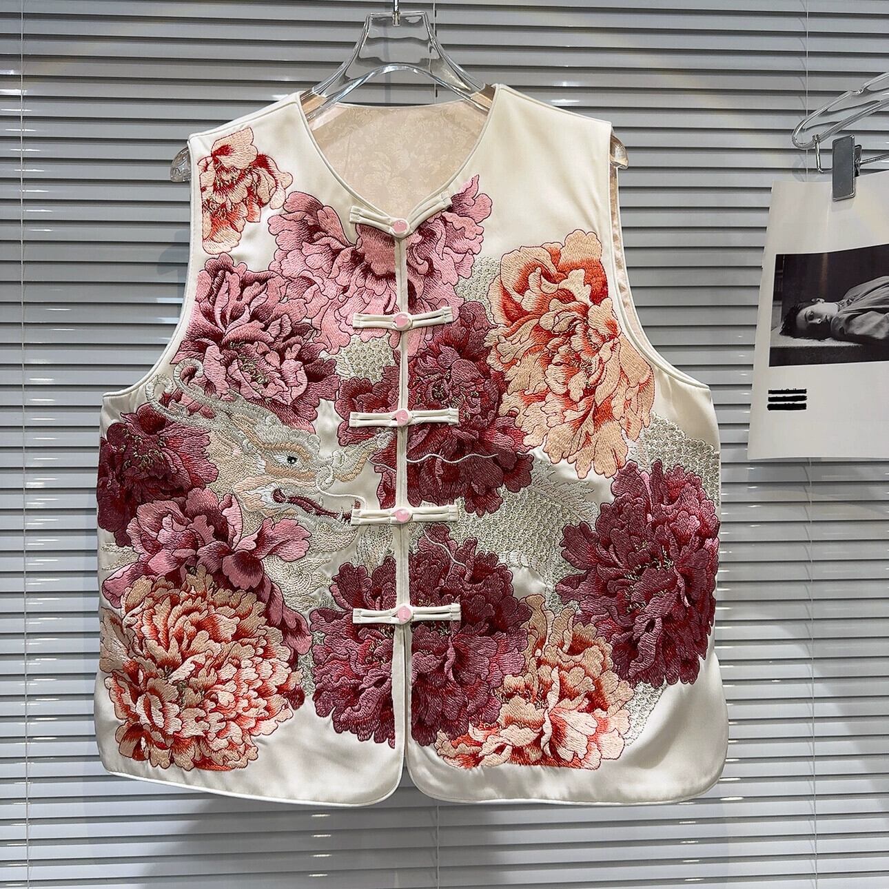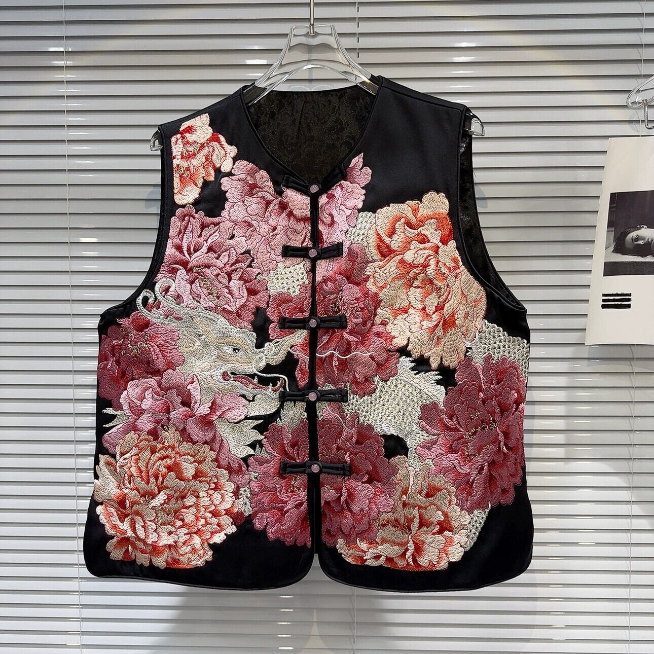 インターネット有名人同じスタイル 2024 春の新中国風中国風 Tenglong 花刺繍パターンサテン V ネックベスト女性 ロング スプリング 春物 Vネック フラワーデザイン gyan33923786966 | vestitialla