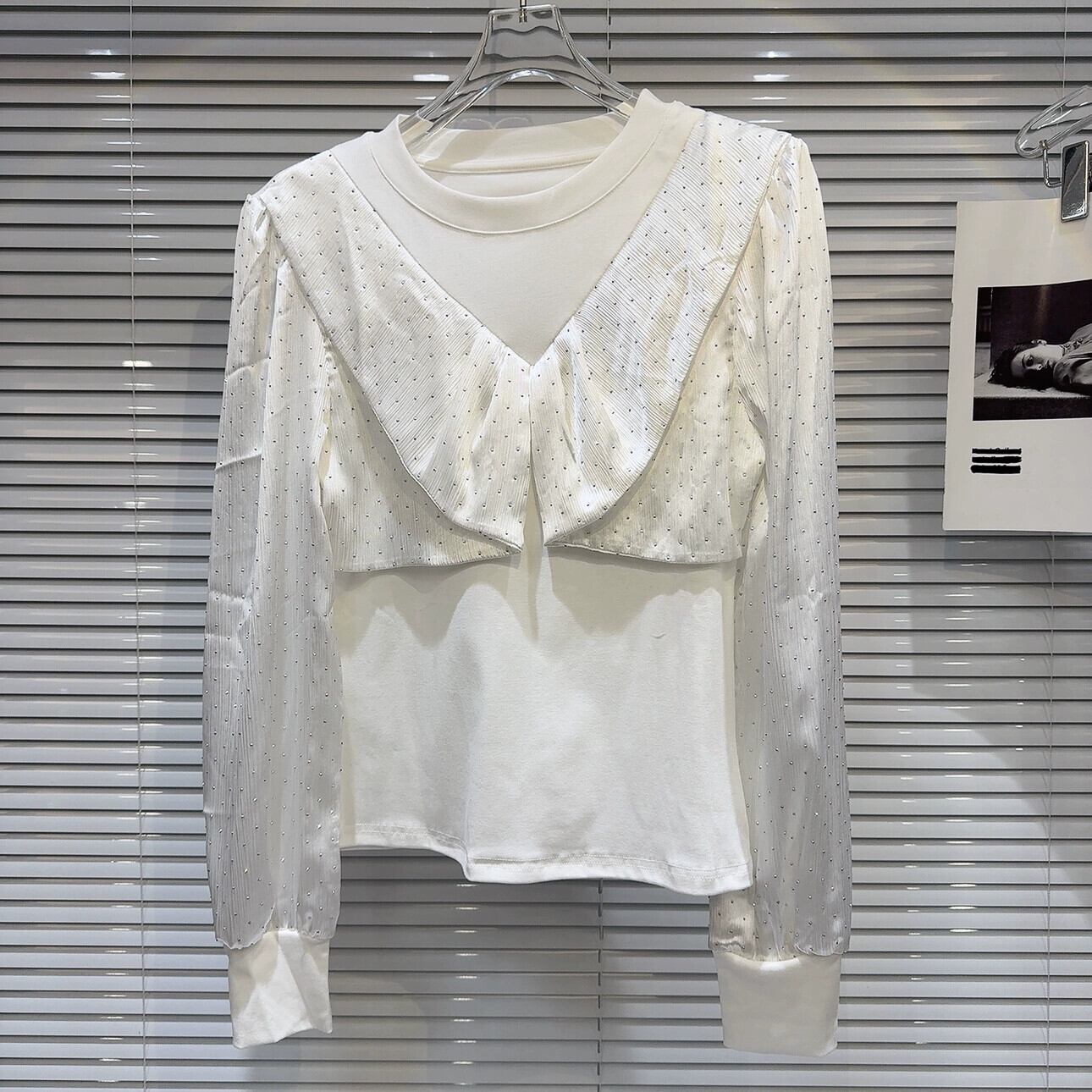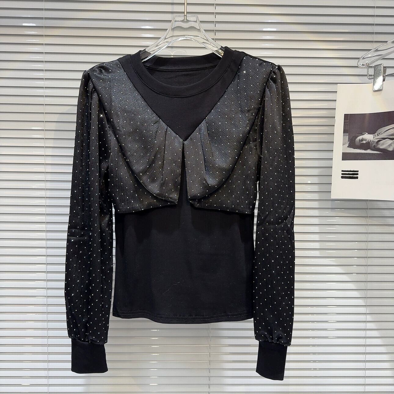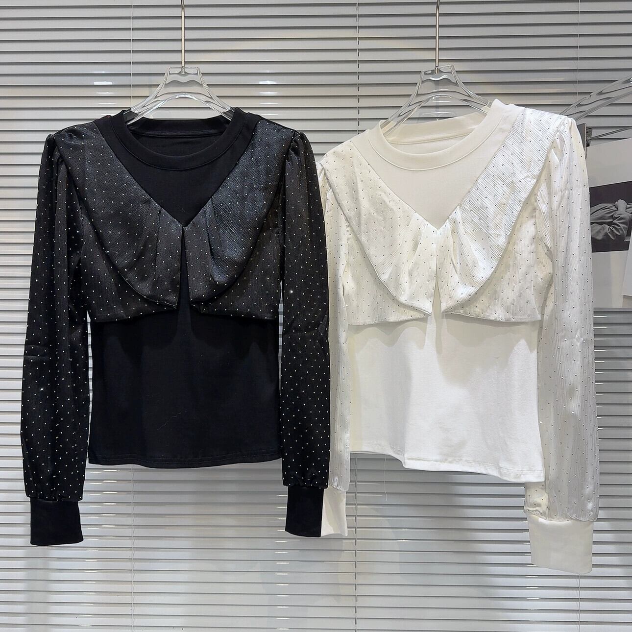 インターネット有名人の同じスタイル 2024 春の新ラインストーンダイヤモンドサテンスプライシングデザインスリム長袖ボトム Tシャツ女性 ロング スプリング 春物 gyan3371568263293 | vestitialla