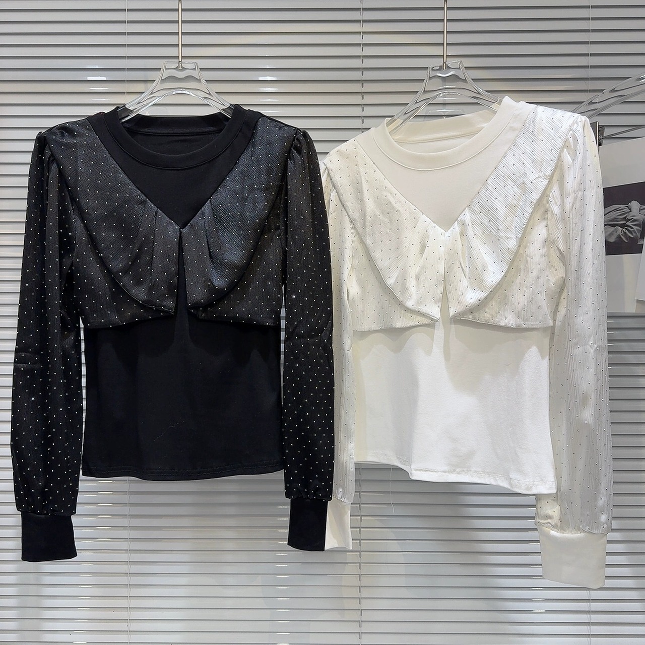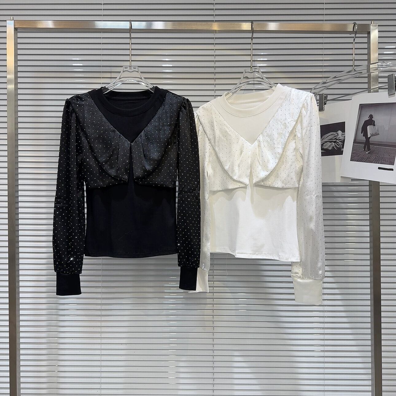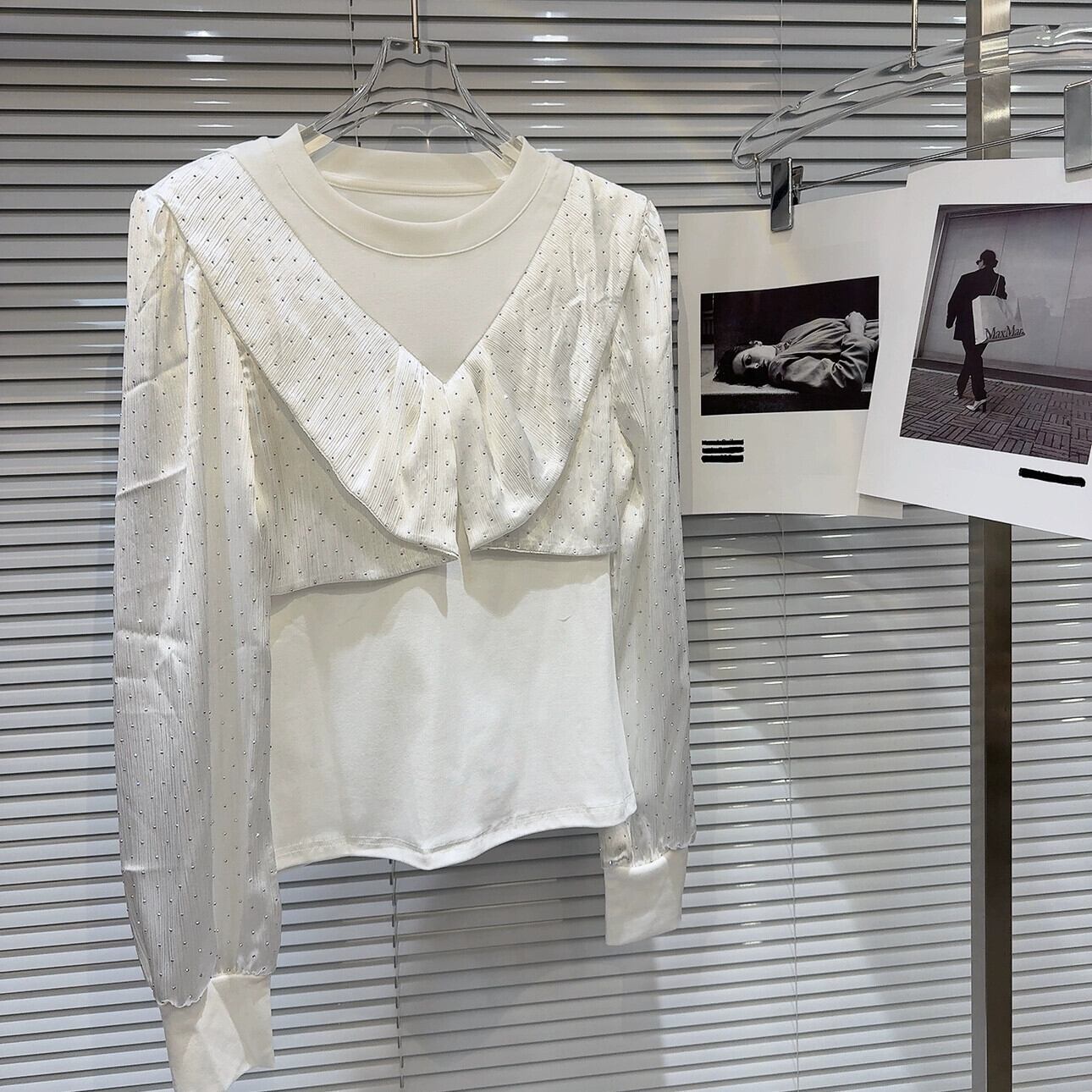 インターネット有名人の同じスタイル 2024 春の新ラインストーンダイヤモンドサテンスプライシングデザインスリム長袖ボトム Tシャツ女性 ロング スプリング 春物 gyan3371568263293 | vestitialla