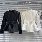 ネットセレブと同じスタイル 2024 春の新スタイル小さな香り無地小さなスカートデザインエレガントな女性長袖 Tシャツ女性 ロング スプリング 春物 ソリッドカラー gyan3315842932717 | vestitialla