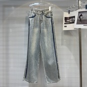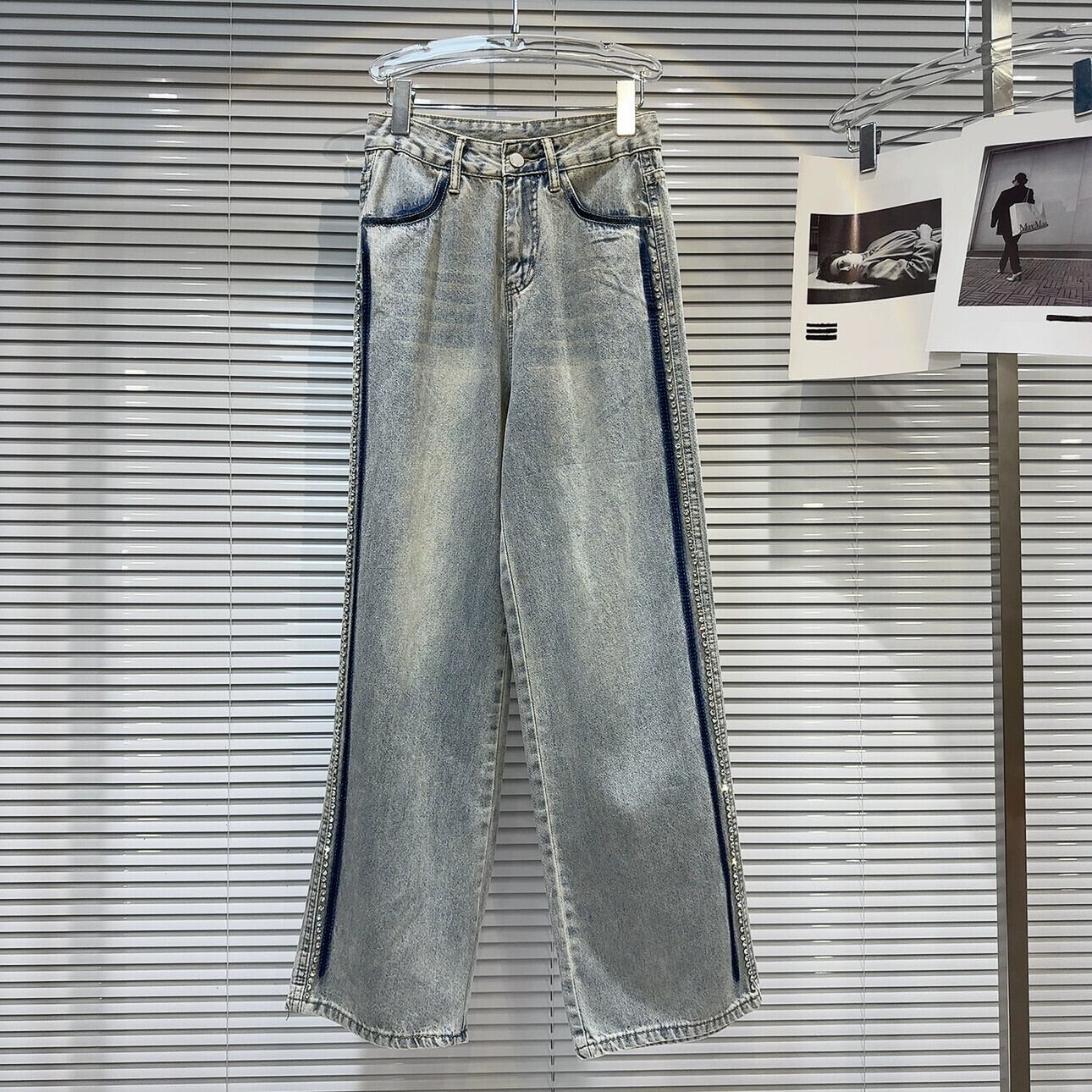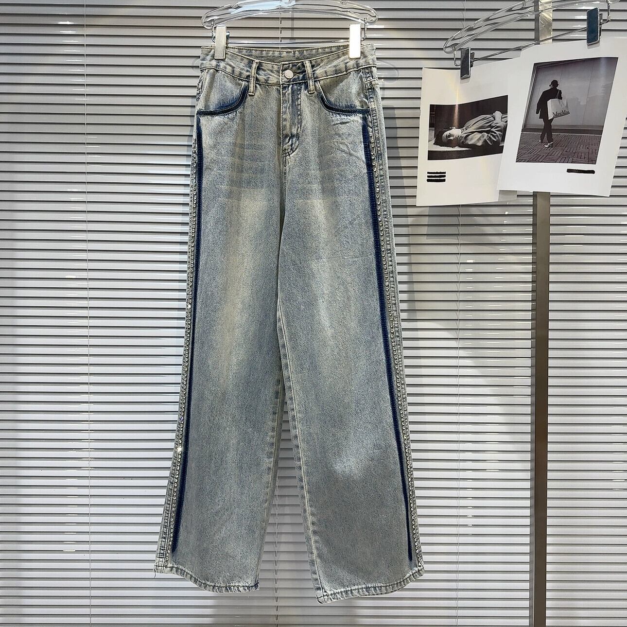 インターネット有名人の同じスタイル2024春の新しいニッチスタイルサイドラインストーンローエッジダメージ加工ウォッシュ加工ワイドレッグジーンズ スプリング 春物 gyan3314847311121 | vestitialla