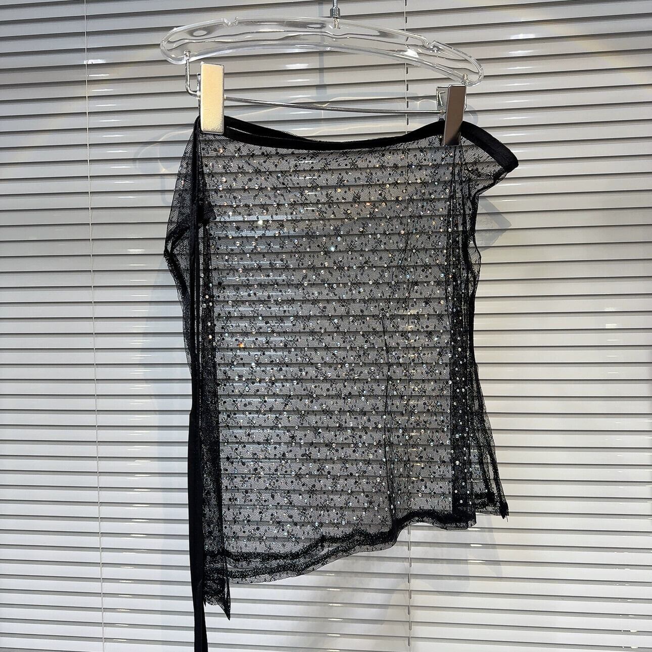 インターネット有名人の同じスタイル 2024 春夏の新しいニッチスタイルフルボディダイヤモンド透明メッシュガーゼストラップスカートカーテンショートスカートマッチング女性 スプリング 春物 サマー 夏物 gyan3323297003504 | vestitialla