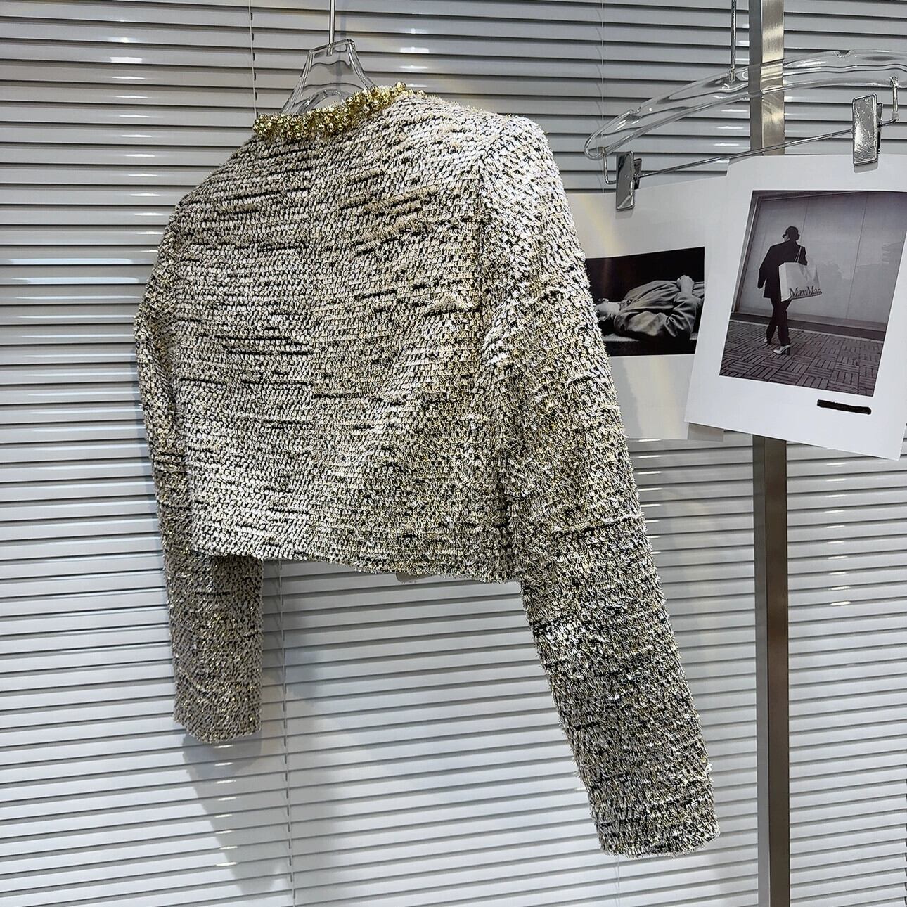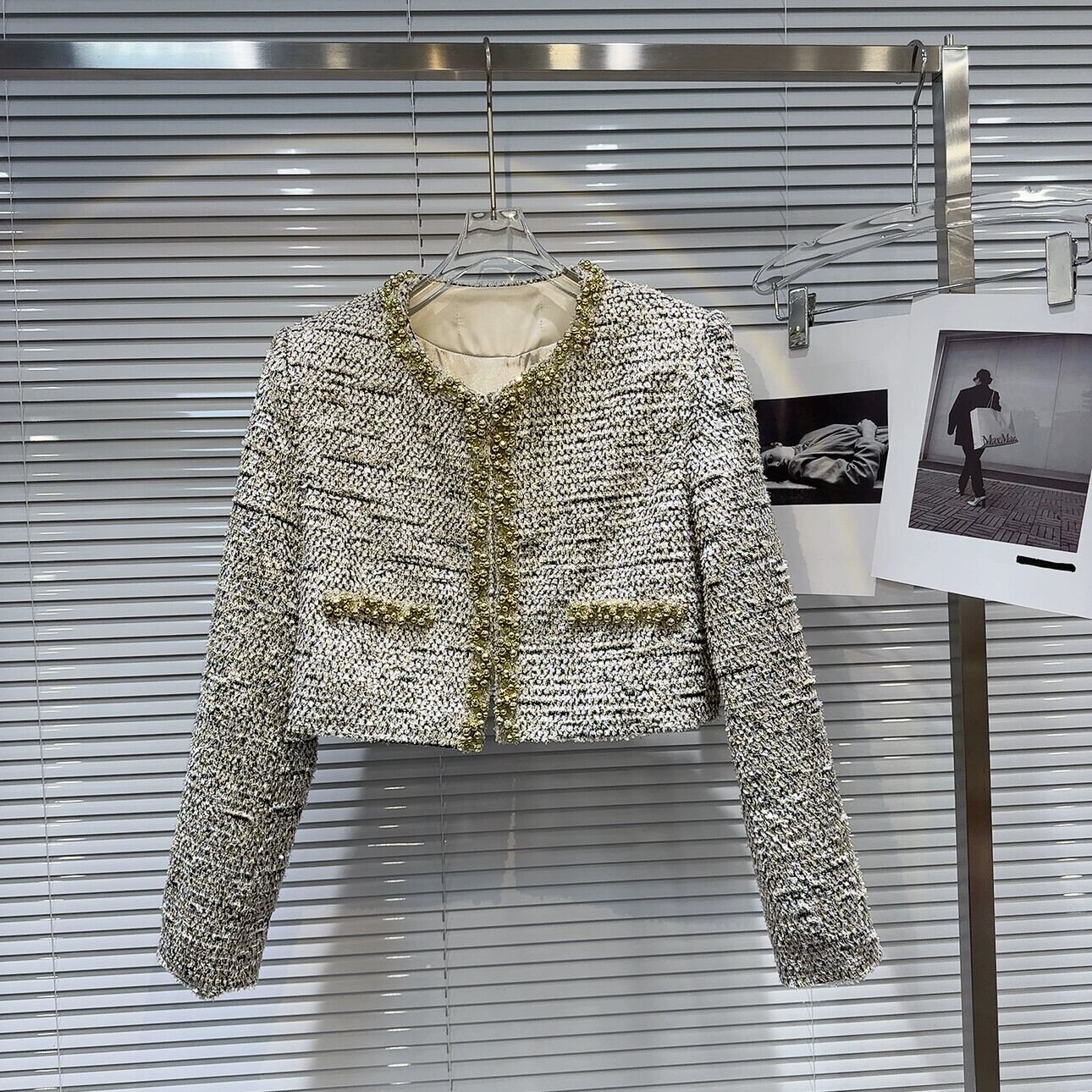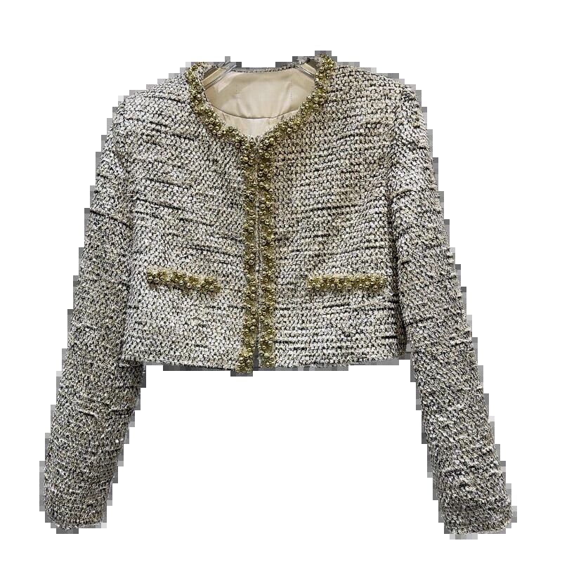 ネット有名人同スタイル2024春新スタイルスモールフレグランスゴールドパールエッジツイード生地高精細ショートジャケットレディース スプリング 春物 真珠 gyan3334914290001 | vestitialla