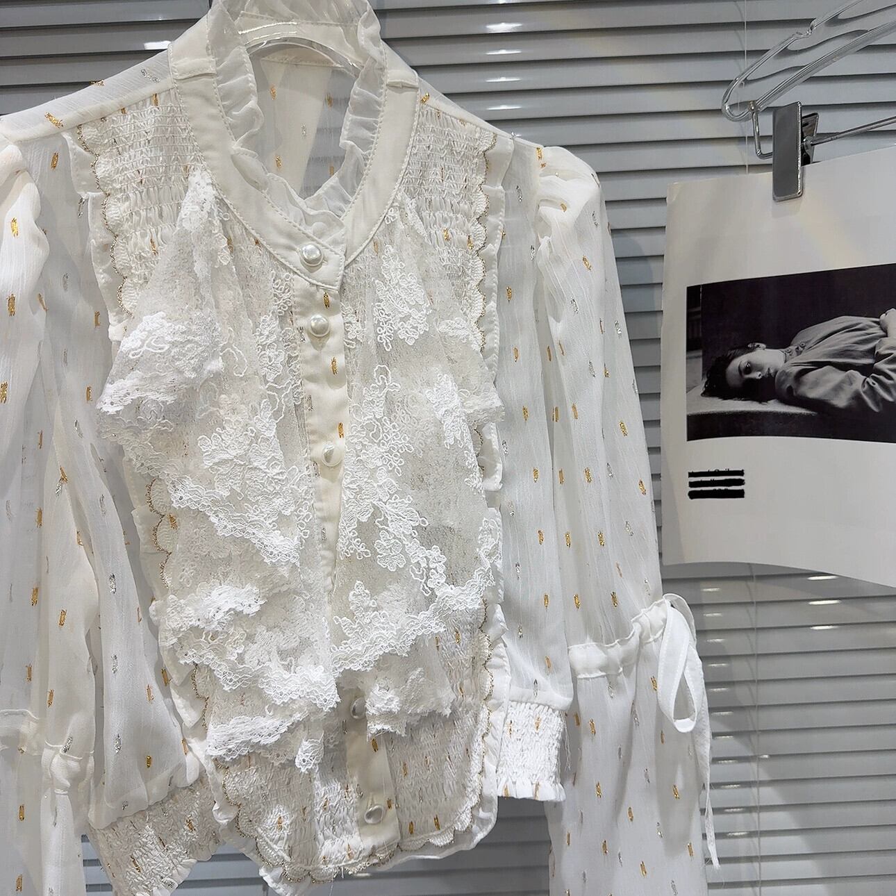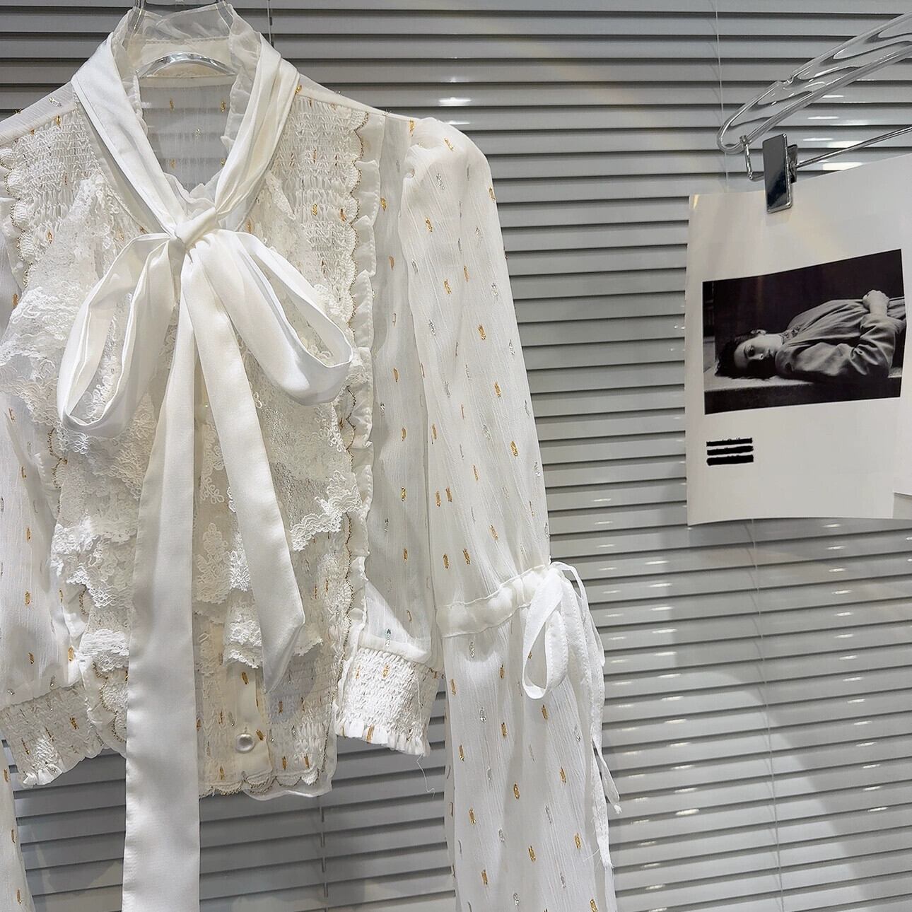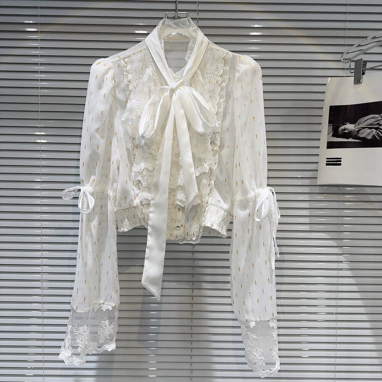 インターネットセレブと同じスタイル 2024 春の新フレンチスタイル小さな香りリボンストラップレースドットシフォンシャツシャツ女性 スプリング 春物 gyan3343075607021 | vestitialla