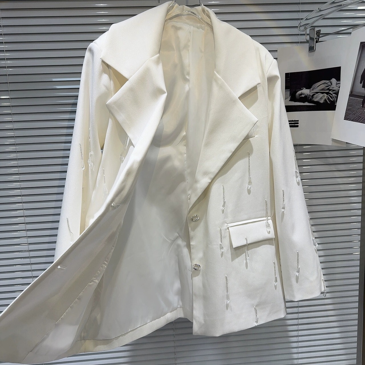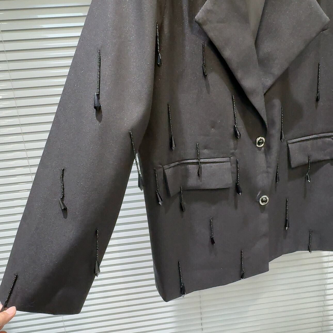 インターネットセレブと同じスタイル 2024 春の新しいニッチスタイルラインストーンビーズテルデザインダークスーツスーツ女性 スプリング 春物 gyan3353088370199 | vestitialla